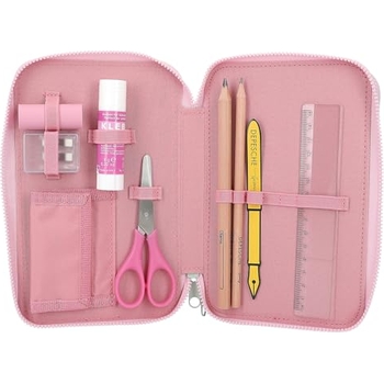 Oh, wie süß! Diese TOPModel Federtasche ist der absolute Traum für alle Mädchen! In knalligem Pink mit coolen Model-Motiven und einem süßen Anhänger. Und das Beste: Sie kommt schon komplett gefüllt! Im unteren Fach findest du 18 bunte Fasermaler, im mittleren Fach 18 trendige Buntstifte. Oben ist noch Platz für einen Klebestift, Radiergummi, Doppelspitzer, Schere, zwei Bleistifte, ein 15 cm Lineal und ein extra Fach für Zettelchen oder Tintenpatronen. Mit den Maßen 20,5 x 14,3 x 7,5 cm passt alles perfekt rein - kein Chaos mehr in der Schultasche! Drei Reißverschluss-Fächer sorgen für super Ordnung. Perfekt für Schule, Malnachmittage oder einfach nur zum Angeben. Wenn du BFF-Geschichten liebst und kreativ bist, bist du hier genau richtig! Einfach einpacken und der Schulalltag wird gleich viel bunter!