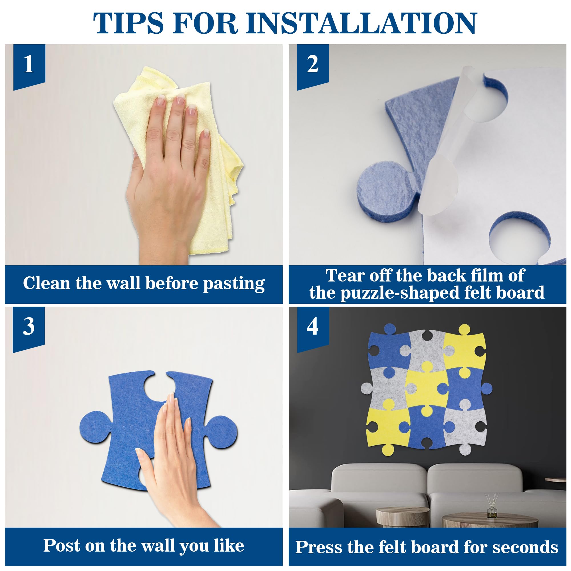 Hey, diese Filz-Pinnwand ist total praktisch für alle, die Ordnung lieben! Du kriegst 9 puzzleteilige Boards in gelb, grau und blau - die klebst du einfach an die Wand und schon haste ne coole Pinnwand. Inklusive 30 bunten Stiften für deine Notizen, Fotos oder Erinnerungen. Super fürs Homeoffice, Kinderzimmer oder die Küche. Die Boards sind aus leichtem Filz, selbstklebend und nur 0,46 Zoll dick. Also keine Sorge, die zerkratzen dir nicht die Wand. Aber Achtung: Am besten klebst du sie auf glatte Oberflächen wie Glas oder Fliesen. Auf normalen Wänden könnte's Probleme geben. Jedes Board misst 6x8 Zoll - perfekt um kreativ zu werden und alles Wichtige im Blick zu behalten. Egal ob Einkaufszettel, Termine oder Urlaubsfotos - hier findet alles Platz. Und als Geschenk ist das Set auch ne super Idee! Einfach abziehen, ankleben und lospinnen - deine Wand, deine Regeln!