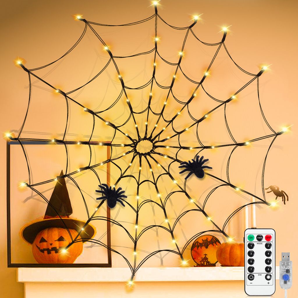 Gruselig coole Halloween-Deko! Diese Spinnennetz-Lichterkette mit 120cm Durchmesser macht dein Zuhause zur Gruselburg. Mit 70 LED-Lichtern und einer schwarzen Plüschspinne sieht das einfach mega authentisch aus! Besonders cool: 8 verschiedene Lichtmodi - von sanftem Leuchten bis zu wildem Blinken ist alles dabei. Und das Beste: Du steuerst alles bequem per Fernbedienung! Batteriebetrieben (3 AA, nicht dabei) - du kannst sie also überall aufhängen, wo du willst. Perfekt für Wände, Fenster oder die Haustür. Ob für die Halloween-Party, Gruselkeller oder einfach nur um die Nachbarn zu erschrecken - diese Deko kommt immer gut an! Einfach aufhängen, Batterien rein und gruseln!