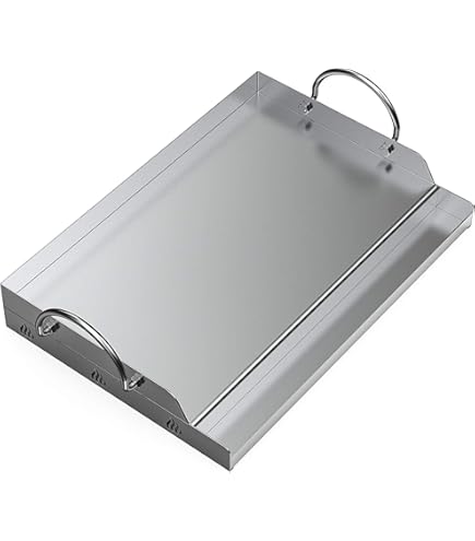 Grillen wie ein Profi! Diese massive Edelstahl-Grillplatte in 54x41cm ist dein neues Lieblings-Küchenutensil. Mit integrierter Fettrinne für sauberes Grillen und zwei praktischen Spateln. Perfekt für Gas-, Elektro- und Holzkohlegrills. Die Antihaft-Oberfläche verhindert Anbrennen, die abnehmbaren Griffe machen das Handling sicher und einfach. Ob Steaks, Gemüse oder Pfannkuchen - auf dieser großen Fläche wird alles perfekt. Einfach reinigen, kein Einbrennen nötig. Perfekt für Gartenpartys, Camping oder einfach den nächsten Grillabend!
