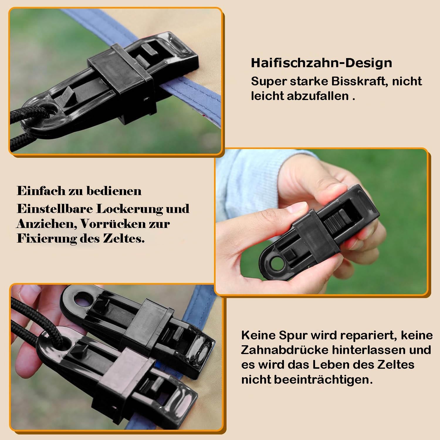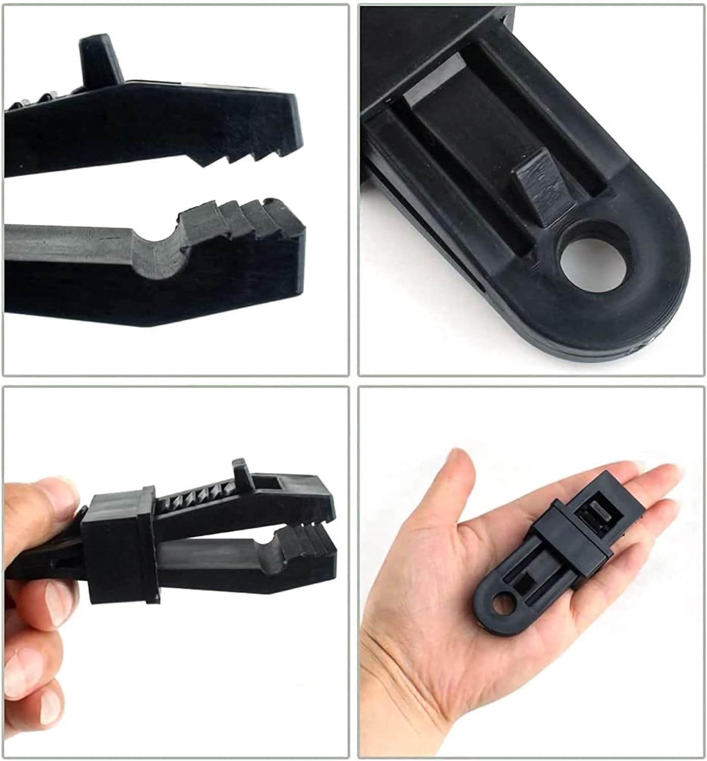 Endlich halten deine Planen sicher! Dieses Set mit 12 robusten Plane Clips ist der perfekte Helfer für Outdoor-Aktivitäten. Das einzigartige Krokodilmaul-Design mit umgekehrten Zähnen sorgt für extrem starken Halt, ohne das Material zu beschädigen. Aus stabilem PA-Material gefertigt, das wasserdicht, UV-beständig und super langlebig ist. Einfach zu bedienen: Plane in den Clip stecken, spiralförmige Daumenschraube festziehen - fertig! Das Ende des Clips bietet sofortigen Anker für Haken oder Seile. Perfekt für Planen, Zelte, Markisen, Autoabdeckungen, Poolabdeckungen und vieles mehr. Mit einer Größe von 7,8x2,2cm und einer Öffnung von bis zu 10mm passen sie für die meisten Anwendungen. Ob im Garten, beim Camping, auf dem Boot oder für gewerbliche Zwecke - diese Clips sind immer einsatzbereit. Wiederverwendbar und extrem stabil - hält auch stärkerem Wind stand. Mach deine Plane sicher und sorgenfrei fest! Ein unverzichtbares Tool für alle Outdoor-Enthusiasten und Heimwerker.