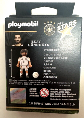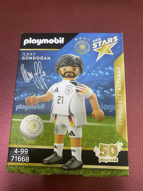 Für alle Fußball-Fans und Playmobil-Sammler: Diese Ilkay Gündogan Figur ist ein absolutes Muss! Als Teil der DFB Stars Serie zur EM 2024 in limitierter Auflage. Komplett neu in Originalverpackung - perfekt für die Vitrine oder zum Spielen. Die Figur Nr. 71668 zeigt den Nationalspieler in typischer Pose. Ein tolles Sammlerstück für große und kleine Fußballbegeisterte. Ob als Geschenk oder für die eigene Sammlung - diese Figur macht immer eine gute Figur! Schnell zuschlagen, denn limitierte Auflagen sind schnell weg!