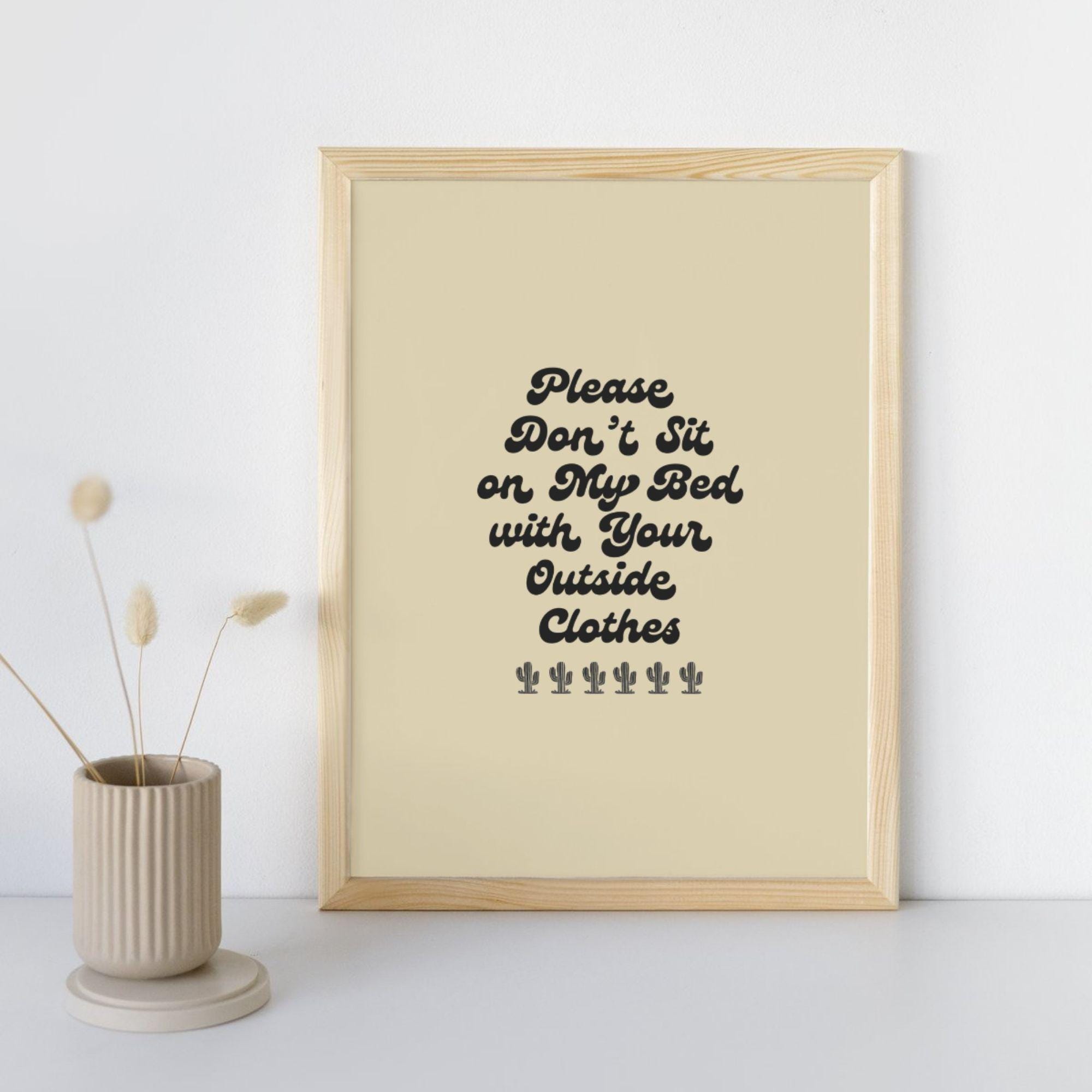 'Please Don't Sit on My Bed with Your Outside Clothes' - dieser lustige Spruch kennt wohl jeder, der Wert auf ein sauberes Bett legt! Dieses coole Blechschild ist nicht nur ein witziger Blickfang, sondern auch ein praktischer Hinweis für Gäste und Mitbewohner. Mit den Maßen 20x30cm ist es groß genug, um gut sichtbar zu sein, aber nicht zu aufdringlich. Die vier vorgebohrten Löcher machen die Montage supereinfach - entweder mit Nägeln oder doppelseitigem Klebeband. Das Besondere: Die bedruckte Oberfläche sieht aus wie altes, rustikales Blech, ist aber tatsächlich wasserfest und verblasst nicht durch Sonneneinstrahlung. Perfekt fürs Schlafzimmer, Wohnheim, aber auch für die Bar, Küche oder das Café. Das retro Design passt zu vielen Einrichtungsstilen und bringt eine persönliche Note in deine vier Wände. Ein ideales Geschenk für Studenten, WG-Bewohner oder einfach für alle, die ihren Humor an der Wand zeigen wollen. Bring Charakter in dein Zuhause - mit diesem witzigen und stylischen Blechschild!