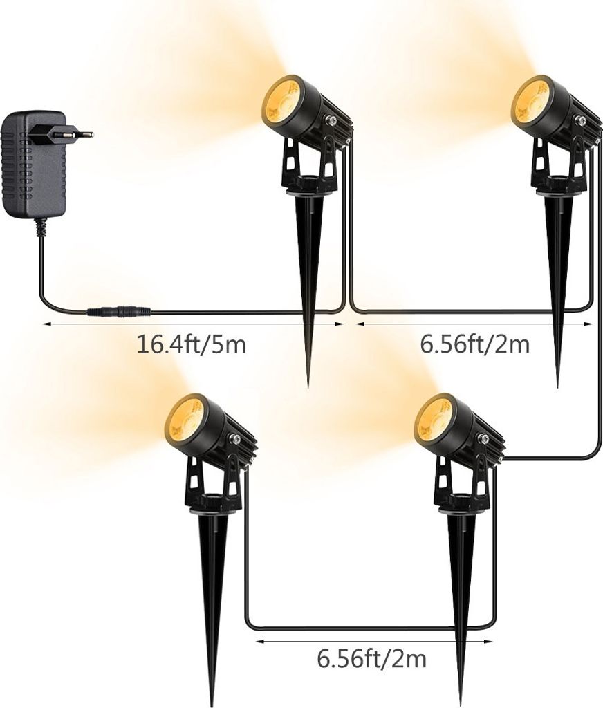 • Pogestrand LED Gartenbeleuchtung 32m Set - 10x 2W Strahler IP65 Wasserdicht Warmweiß