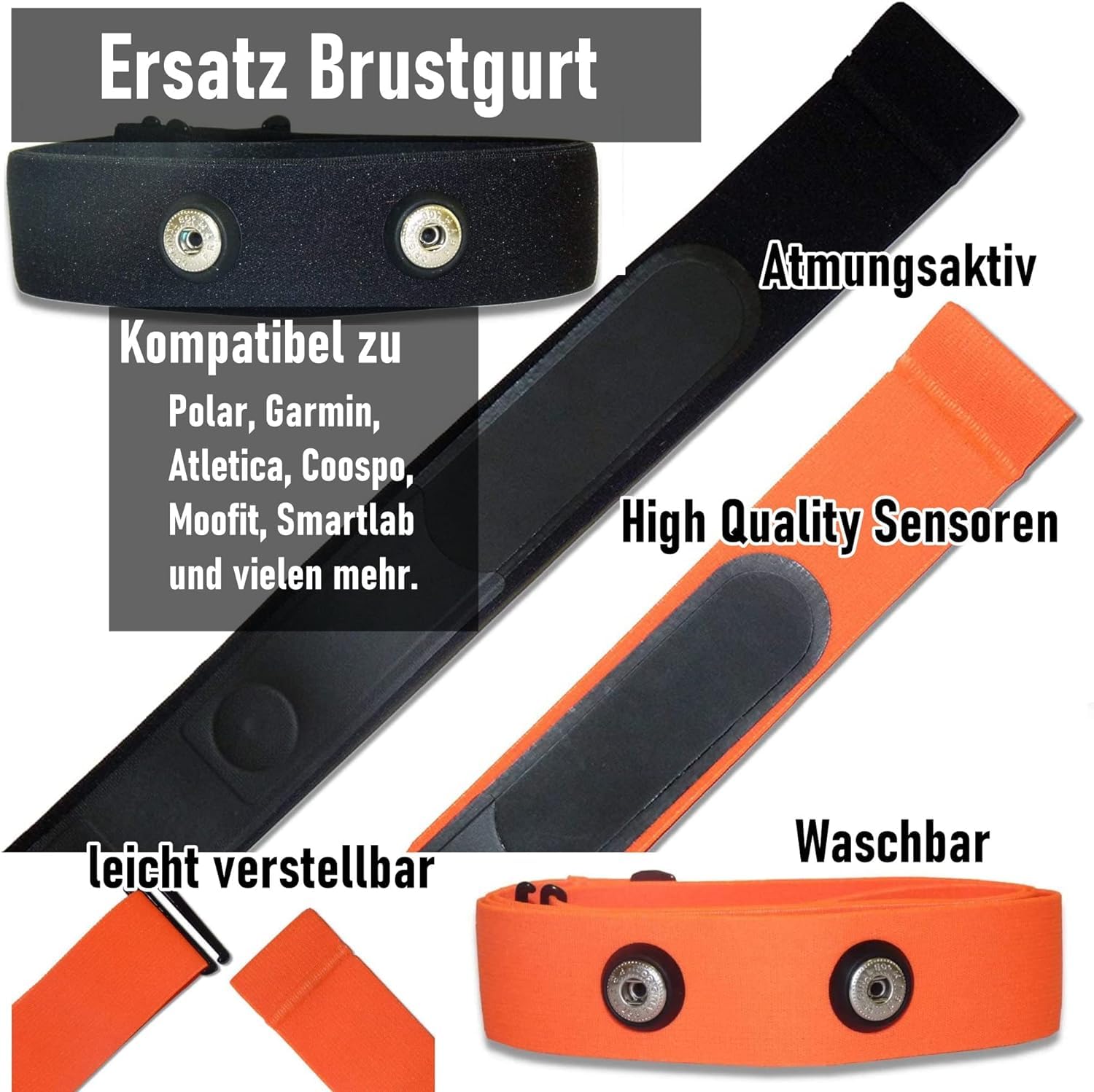 • Herzfrequenz Brustgurt 70-110cm - Polar H10 Ersatzband Kompatibel Mit Garmin & Wahoo