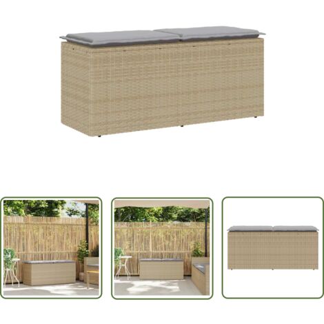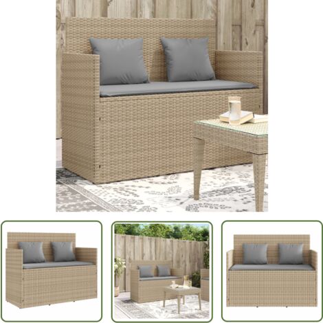 • VidaXL Gartenbank Beige 110x40x44cm - Poly Rattan Mit Kissen | Terrassenbank Outdoor | Wetterfeste Gartenmöbel