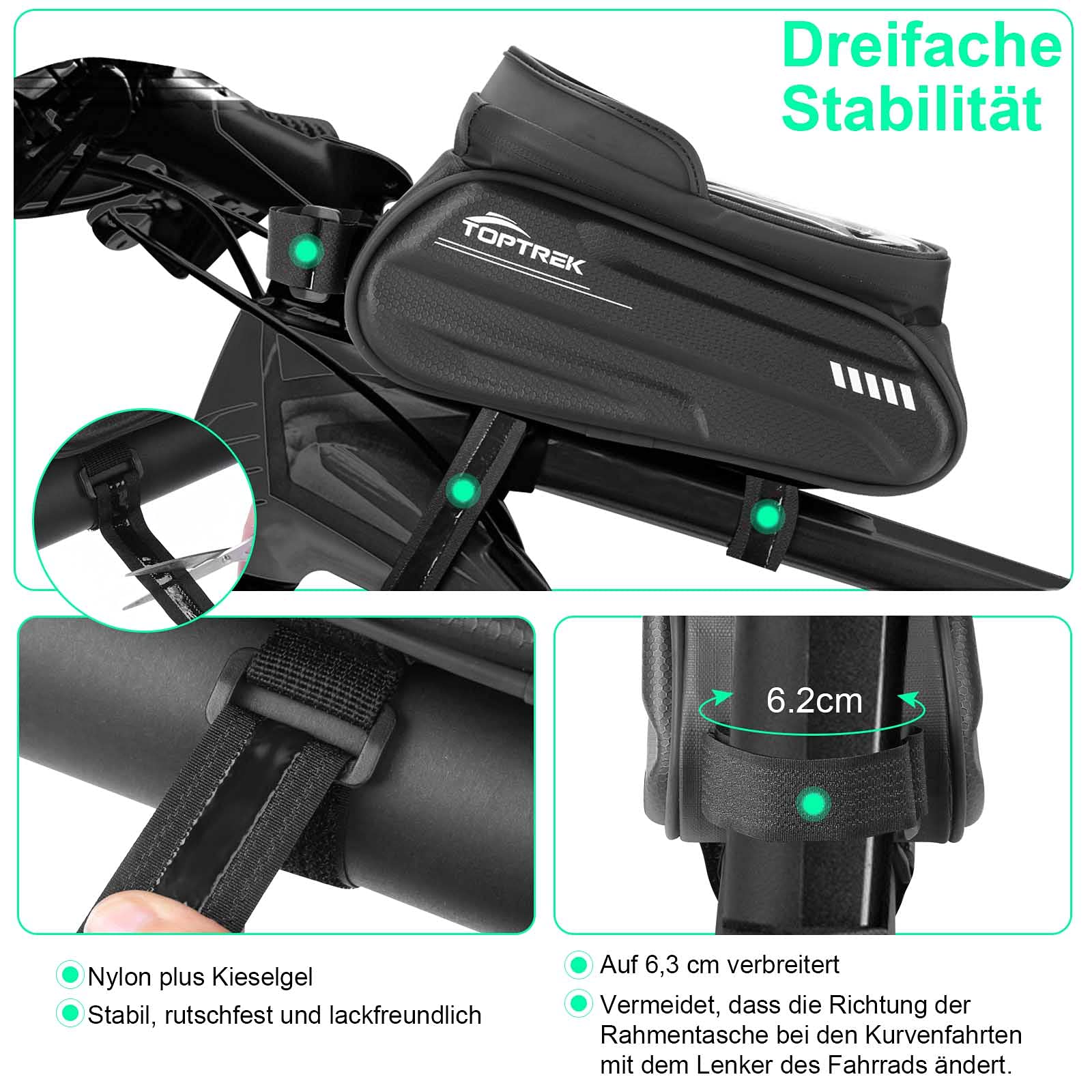 Praktische Dreieck-Tasche für dein Fahrrad! Maße 27x18x5cm - perfekt fürs Oberrohr. Aus robustem Polyester - wasser- und wetterfest! Verstellbare Riemen für einfache Montage an jedem Fahrrad. Passt für Faltrad, Rennrad, Mountainbike - einfach universell! Reißverschluss sorgt für sicheren Verschluss - nichts fällt raus. Genug Platz für Smartphone, Geldbörse, Schlüssel, kleine Werkzeuge. Rutscht nicht und behindert nicht beim Treten - optimales Design. Leicht zu installieren und wieder abzunehmen. Perfekt für den täglichen Weg zur Arbeit oder für Radtouren. Macht dein Fahrrad noch praktischer ohne Komfort-Einbußen! Deine Wertsachen sind sicher verstaut und immer griffbereit. Einfach ein Must-Have für jeden Radfahrer!