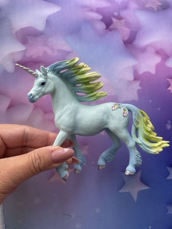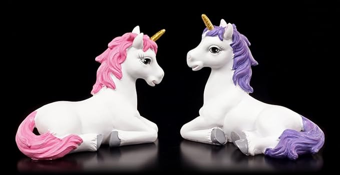 Zauberhafte Einhorn-Magie fürs Zuhause! Dieses entzückende 4er Set bezaubert mit liebevoll gestalteten Mini-Einhörnern. Jede Figur ca. 5,8cm groß, aus hochwertigem Polyresin handbemalt. Mit funkelnden regenbogenfarbenen Mähnen und goldenen Hörnern. Zwei verschiedene Posen sorgen für Abwechslung in der kleinen Herde. Verpackt in einer farbenfrohen Regenbogen-Geschenktüte - ideal als Mitbringsel, für Kindergeburtstage oder zur Deko im Kinderzimmer. Robust und langlebig, kein billiges Plastik. Perfekt für Einhorn-Fans, Sammler oder als Glücksbringer. Bring Fantasie und Farbe in jedes Zimmer - diese süßen Einhörner zaubern jedem ein Lächeln ins Gesicht!