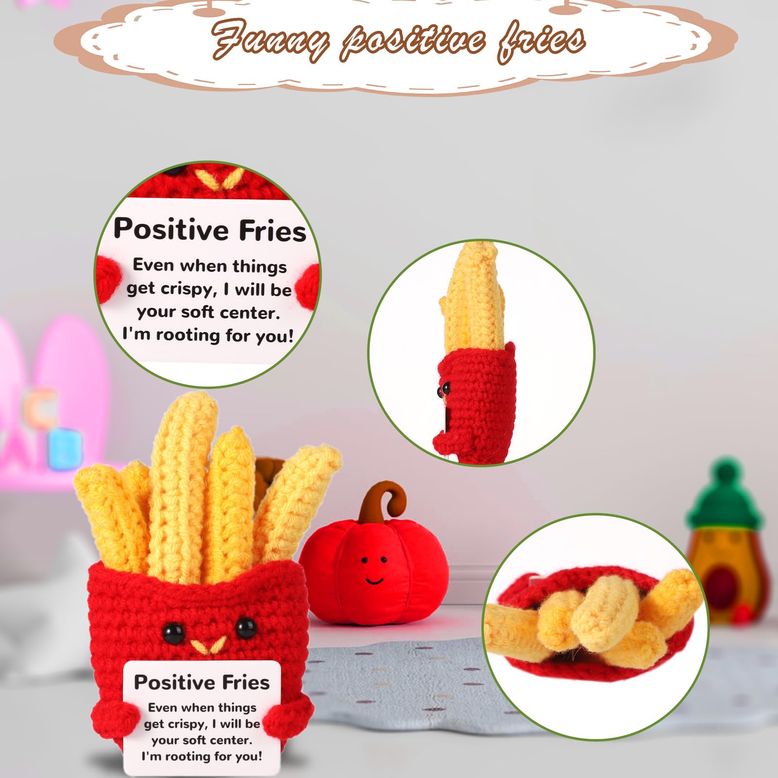 Total niedliche gestrickte Pommes-Puppe! Diese süße Emotionale Unterstützung in Pommes-Form bringt sofort ein Lächeln ins Gesicht. Handgehäkelt aus weicher Wolle, angenehm weich und leicht.