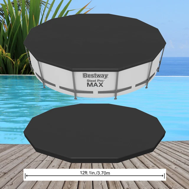 Mit 366cm Durchmesser passt die Abdeckung perfekt auf die meisten Standard-Rundpools. Das dickere PE-Material ist absolut wasserdicht, UV-beständig und hält auch stärkerem Wind stand.