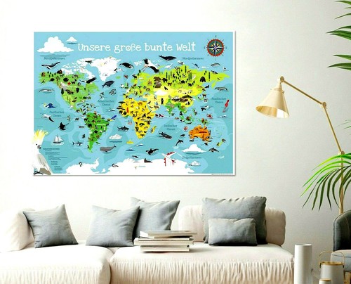 Eine wunderschöne Weltkarte speziell für Kinder! Dieses riesige Poster misst stolze 140x100cm und zeigt unsere bunte Welt in handgezeichneten, kindgerechten Illustrationen. Jedes Detail ist liebevoll koloriert - Tiere, Sehenswürdigkeiten, Menschen aus aller Welt. Perfekt fürs Kinderzimmer, Klassenzimmer oder Spielzimmer. Wird sicher in einer stabilen Verpackung geliefert. Und das Beste: Du bekommst ein zusätzliches Überraschungsposter gratis dazu! Hochwertiger Druck auf gutem Papier - die Farben leuchten richtig schön. Macht neugierig auf die Welt und fördert spielerisch geografisches Wissen. Ein Hingucker, der garantiert für strahlende Kinderaugen sorgt!