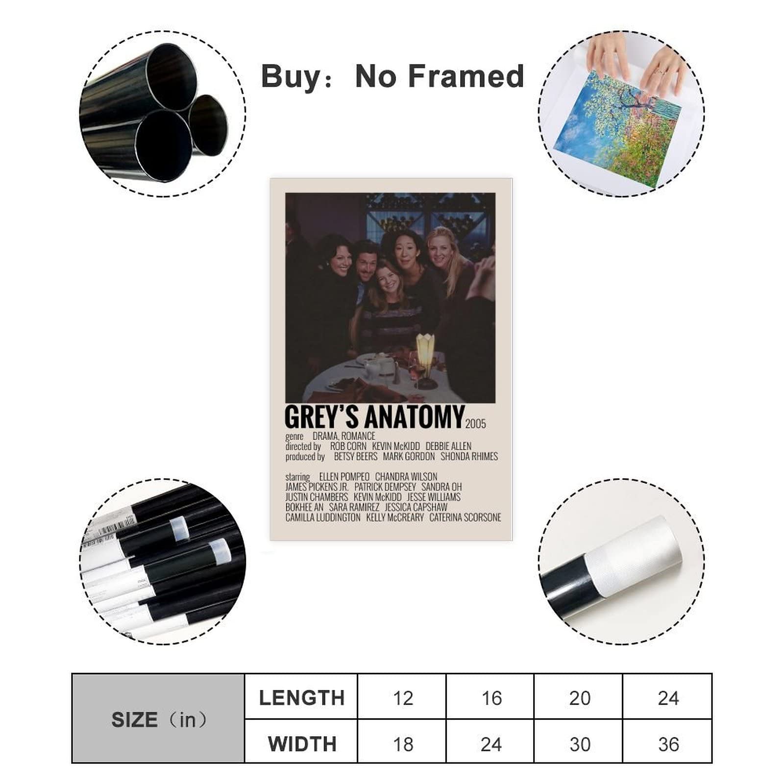 Grey's Anatomy Vintage Poster 50x70cm - TV Serie Leinwand Druck Wanddeko Ohne Rahmen