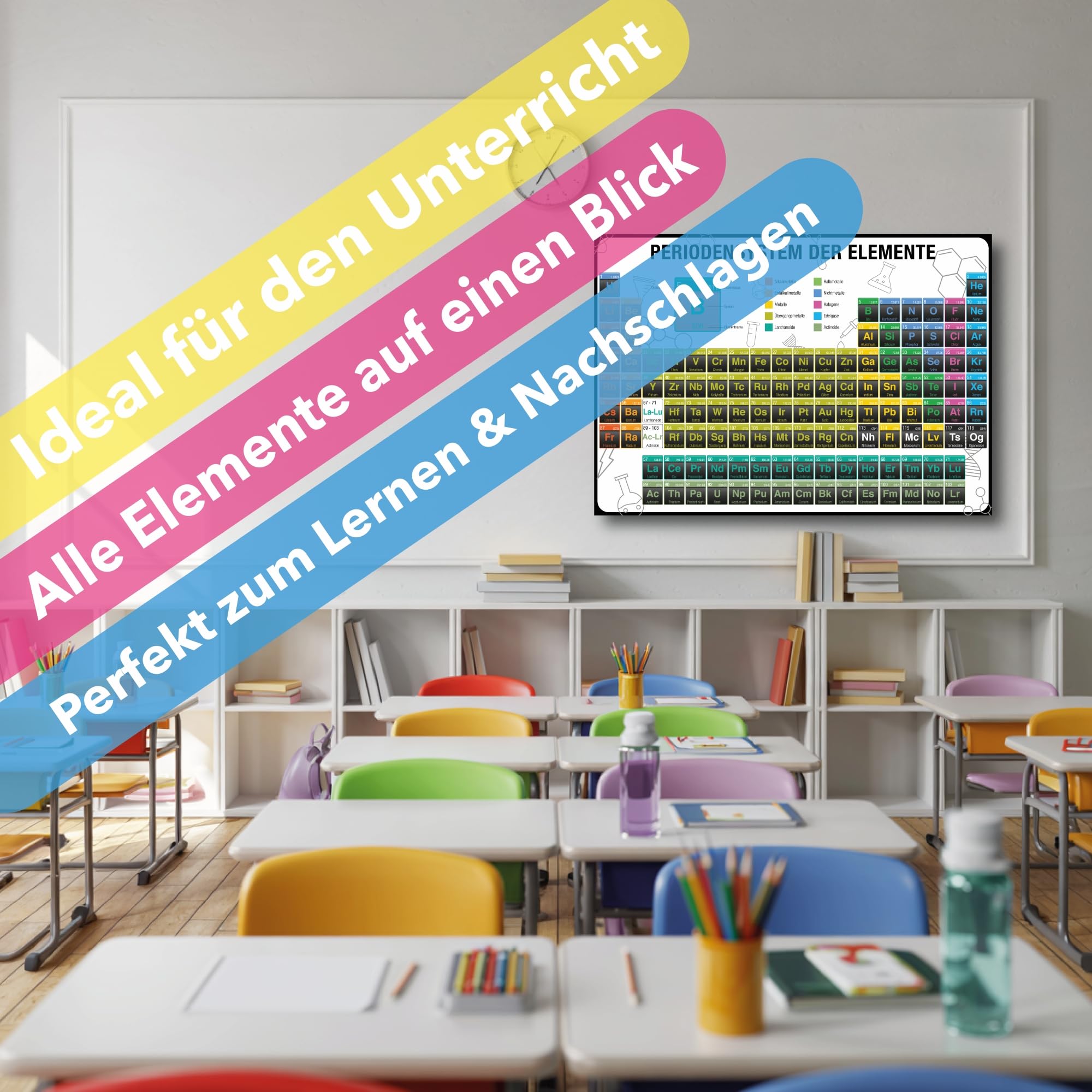 Chemie lernen war noch nie so schön! Dieses hochwertige Periodensystem-Poster im A2 Format (60x42cm) ist perfekt für Schule, Studium oder Labor. Auf Fotopapier gedruckt mit lebendigen, langlebigen Farben. Made in Germany in bester Qualität! Erhältlich mit weißem oder schwarzem Hintergrund. Ideal als Lehrmittel oder dekoratives Element für Wissenschaftsbegeisterte. Ungerahmt für flexible Aufhängung. Hol dir dieses informative Poster und habe alle chemischen Elemente immer im Blick!