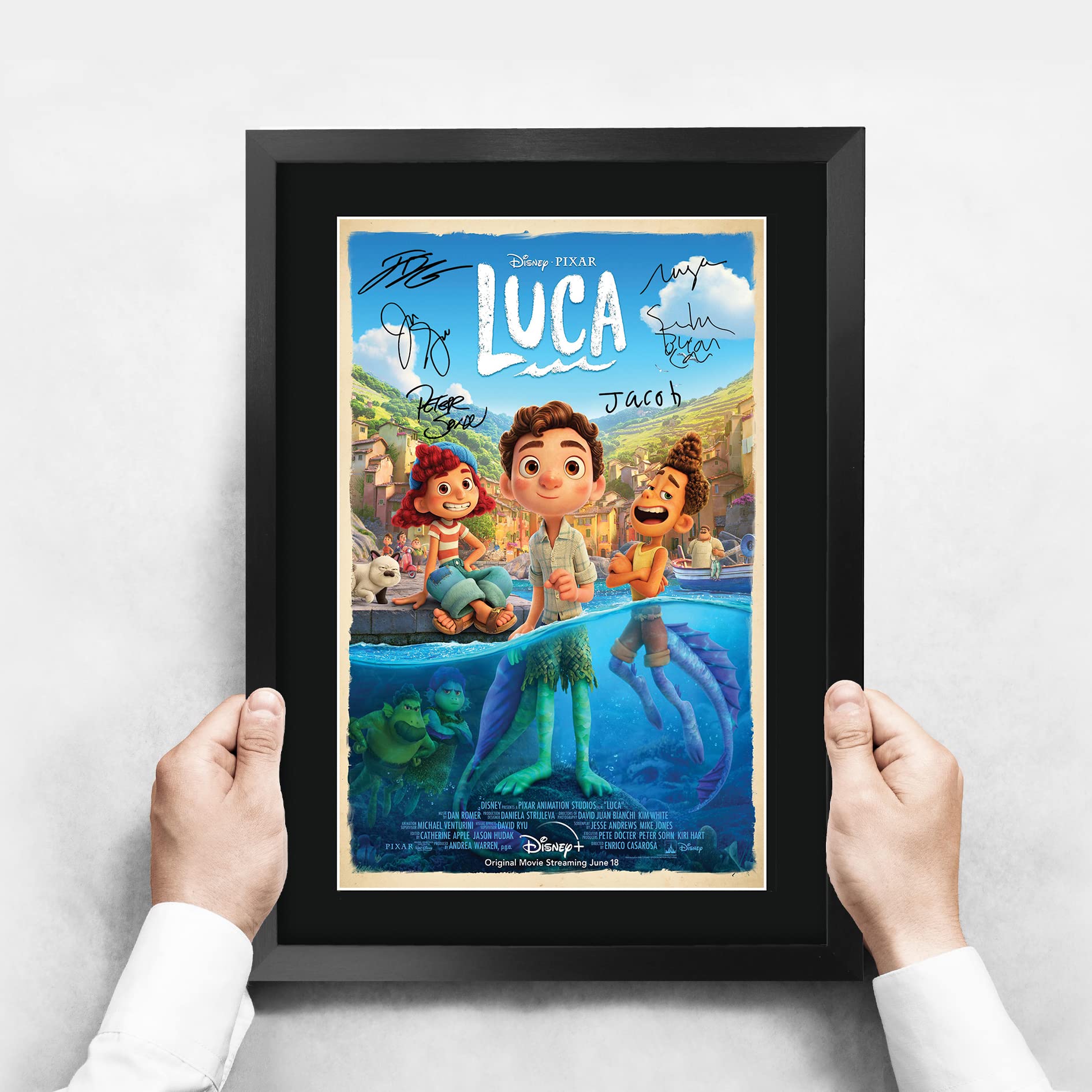 Alter, das M3GAN Poster ist der absolute Hammer für alle Fans des Films! Das A3 Poster (445x330mm) kommt schon fertig gerahmt in einem schlanken schwarzen Polycarbonat-Rahmen - einfach aufhängen und sich freuen. Professionell in einem Studio hergestellt, mit hochwertigen Laserdruckern gedruckt und in säurefreie Passepartouts eingefasst. Auf der linken und rechten Seite siehst du vier klassische Fotos, in der Mitte prangt das Hauptfoto mit dem gedruckten Autogramm. Unten findest du noch eine Metall-Optik-Plakette mit Namen und Karriereinfos. Das Acrylglas hält das Display staubfrei und sauber. Superleicht aber trotzdem von höchster Qualität - das perfekte Geschenk für Weihnachten, Geburtstage oder einfach so! Und das Beste: Es kostet nicht die Welt, sieht aber aus wie ein teures Original. Deine Freunde werden dich dafür lieben!