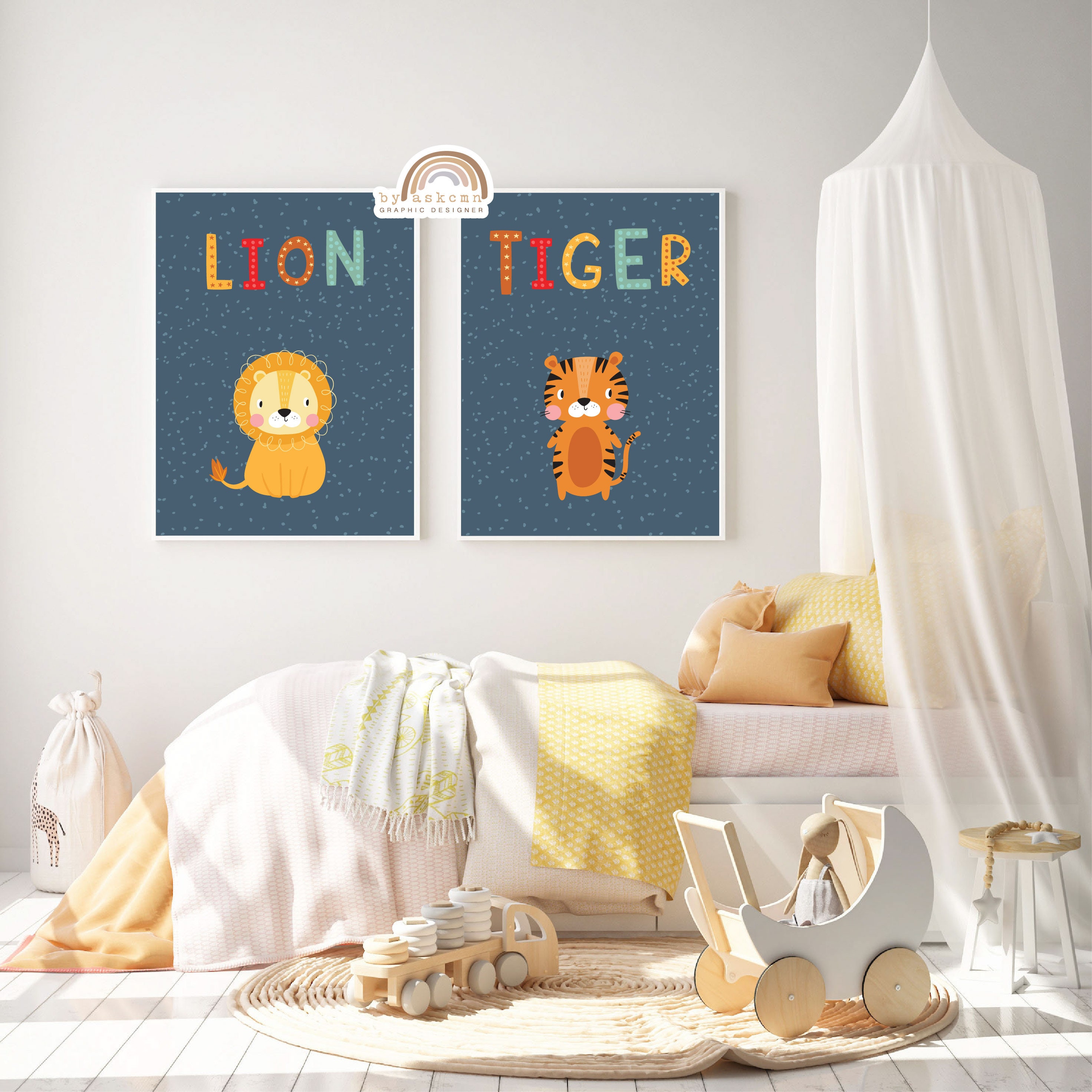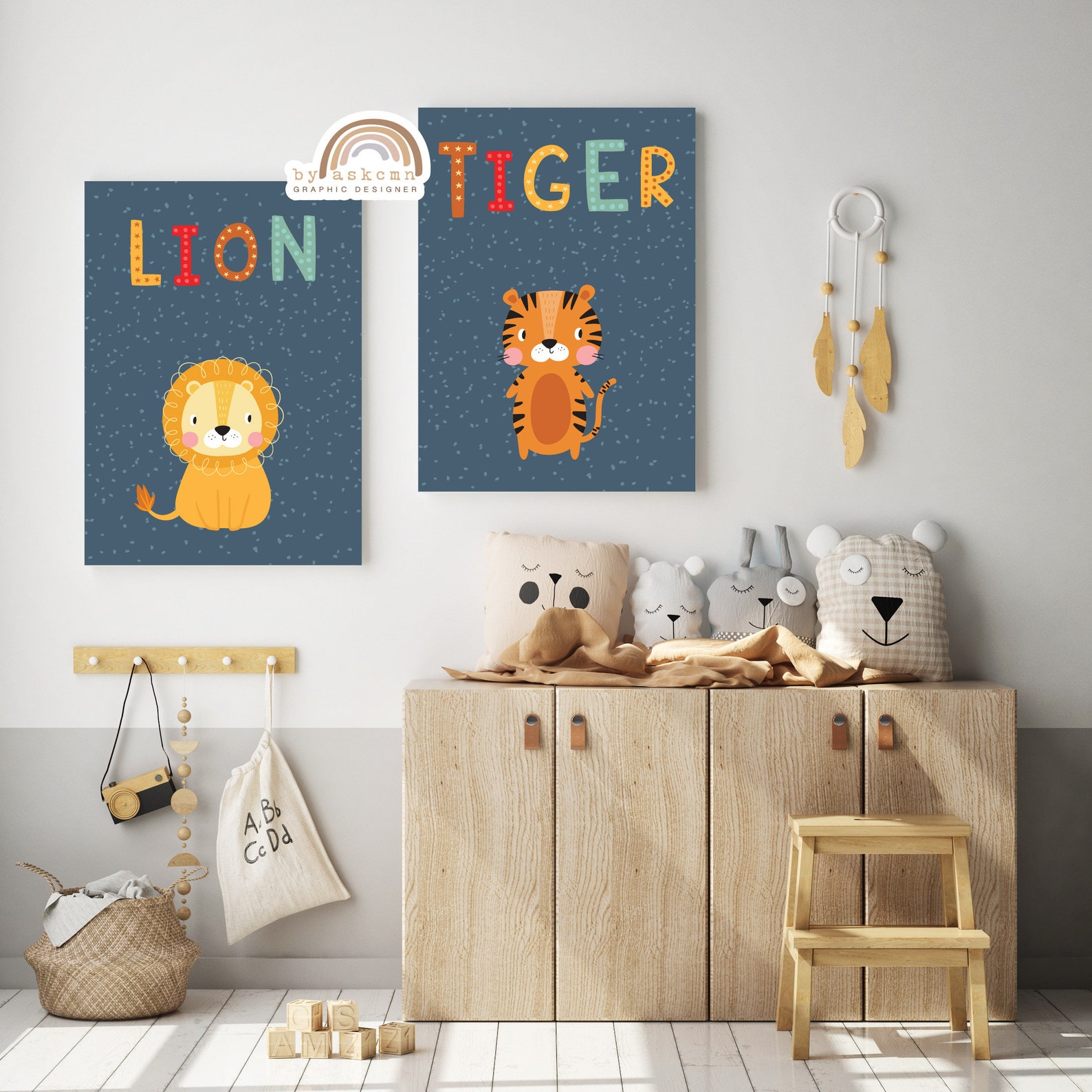 • 3er Set Safari Tier Poster - Löwe, Teddy, Tiger Für Babyzimmer (30x40cm)