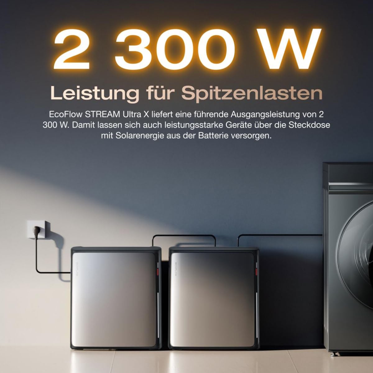 Mit dem ECOFLOW STREAM Ultra X Speicher (3,84 kWh) und vier JaSolar 500W Full Black Modulen produzierst du bis zu 2.000W Solarleistung. Das reicht für Kühlschrank, Waschmaschine & Co!