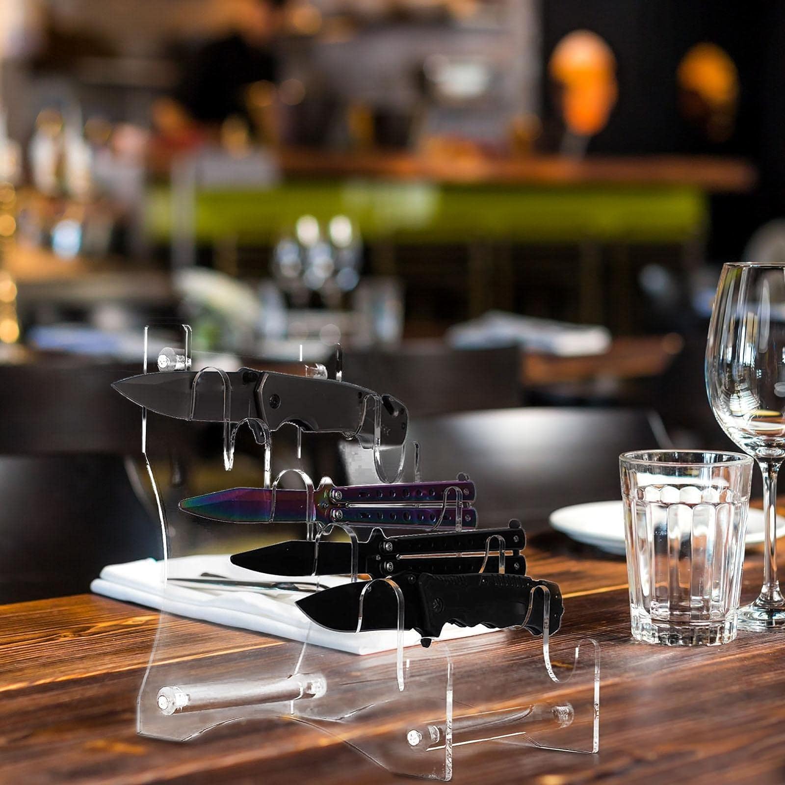 Zeig deine Messersammlung, wie sie es verdient! Dieser elegante Acryl-Messerständer präsentiert bis zu 6 Taschenmesser in voller Pracht.