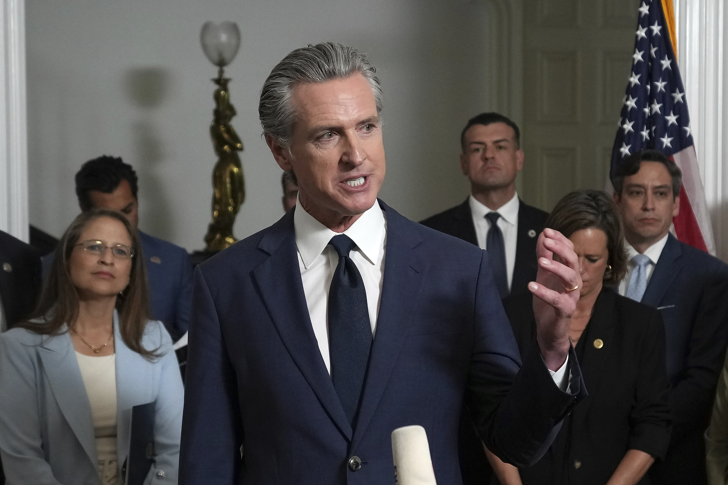 Für alle Gavin Newsom Fans! Dieser coole Hoodie mit dem \Gavin'28 Newsom\ Design zeigt, dass du hinter ihm stehst. Perfekt für Rallyes, Proteste oder einfach so im Alltag.\n\nMit 8.5 oz Material richtig angenehm zu tragen - nicht zu dick, nicht zu dünn. Klassischer Schnitt und doppelt genähter Saum, damit er auch länger hält.\n\nEgal ob du politisch aktiv bist oder einfach nur den Style magst - damit machst du auf jeden Fall Statement. Super bequem und sieht lässig aus.\n\nTrag ihn zur nächsten Demo, beim Einkaufen oder einfach auf dem Sofa. Zeig deine Unterstützung für Newsoms Vision für die Zukunft!\n\nEin muss für jeden Politik-Fan - oder für alle, die einfach nur nen coolen Hoodie mit Message suchen. Qualität, die überzeugt!