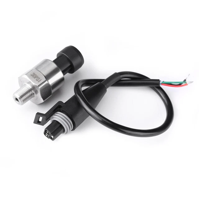 Präzision für deine Projekte! Dieser hochwertige Drucksensor aus Edelstahl misst Druckwerte von Öl, Kraftstoff, Luft oder Wasser mit einer Genauigkeit von ±2%. Mit 1/8NPT Gewinde und wasserdichtem Schnelltrennstecker ist die Installation ein Kinderspiel. Technische Daten: Spannung: DC 5V, Druckbereich: 30 psi (auch 100, 150, 200, 300, 500 psi verfügbar), Ausgang: 0,5V-4,5V linear. Arbeitstemperatur von -40°C bis +120°C und IP67 Schutz machen ihn zum Allrounder für anspruchsvolle Umgebungen. Perfekt für Automotive, Industrie oder Hobby-Projekte - wo immer du präzise Druckmessung benötigst!