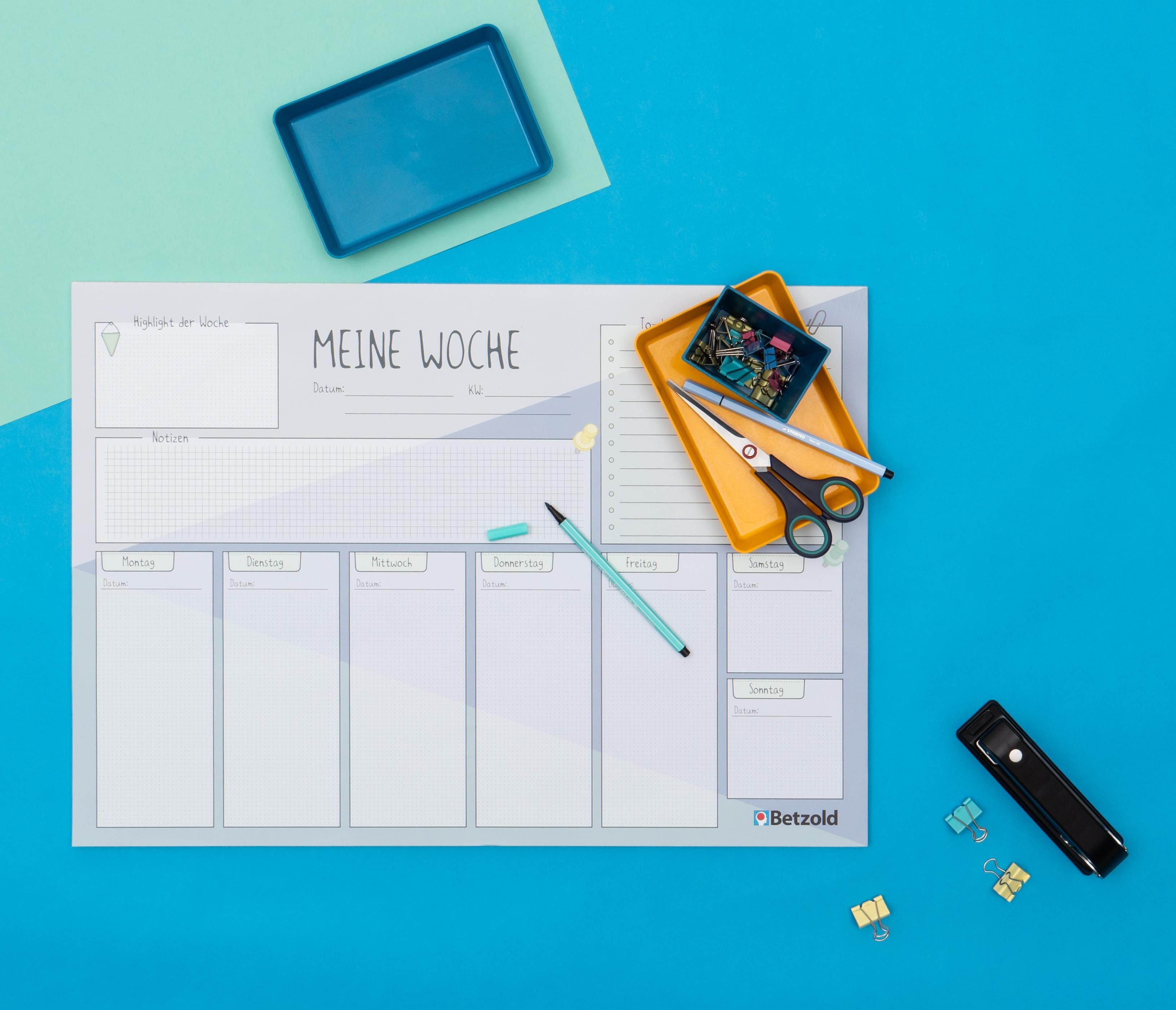 Endlich Ordnung auf dem Schreibtisch! Diese Zettler Schreibunterlage Practica 2026 ist gleichzeitig ein praktischer Wochenplaner UND schützt deine Tischplatte.\n\nJede Woche hat ein eigenes Blatt - super übersichtlich! Du siehst sofort, was ansteht. Und das Beste: Die Blätter sind oben offen, sodass du ganz einfach Termine vortragen oder Wiedervorlagen einlegen kannst.\n\nZusätzlich gibt's auf jedem Blatt eine Dreimonats- und Jahresübersicht. So behältst du immer den Überblick über die großen Zeiträume.\n\nDie 4,5 cm breite Schutzleiste am unteren Rand verhindert das Abknicken der Blätter - total praktisch! Das Design in Schwarz/Blau sieht dazu noch super professionell aus.\n\nMit 60 x 37 cm ist die Unterlage die perfekte Größe für die meisten Schreibtische. Die stabile Kartonunterlage gibt Halt und die FSC-Zertifizierung garantiert, dass es sich um nachhaltiges Material handelt.\n\nHergestellt in Deutschland - Qualität, auf die man sich verlassen kann! Ob im Büro, Homeoffice oder für die Schule - diese Schreibunterlage macht Organisation einfach.\n\nFormat: 60 x 37 cm\nKalender: 1 Woche pro Blatt + Monats-/Jahresübersicht\nFeatures: Offene Blattobenkannte, Schutzleiste\nMaterial: FSC-zertifiziert, deutsche Qualität\n\nOrganisation und Schutz in einem - für den perfekt organisierten Arbeitsplatz!