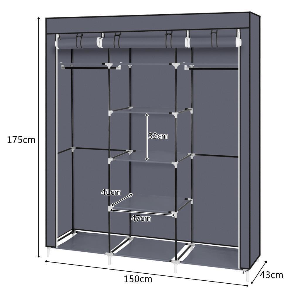 Schluss mit Chaos! Dieser faltbare Stoff-Kleiderschrank bietet super viel Stauraum für Kleidung, Schuhe und Accessoires. Mit stabilen Stahlrohren (25 mm) und magnetischem Türvorhang – alles bleibt staubfrei und ordentlich. Perfekt fürs Schlafzimmer, den Flur oder die Waschküche. Einfach aufbauen und sofort nutzen! Die 20 cm hohen Beine machen Reinigung easy und bieten Platz für Schuhe. Aus robustem Satinstoff – waschbar und langlebig. Ideal für Mieter, Studenten oder alle, die flexibel bleiben möchten. Mehr Ordnung, weniger Stress!