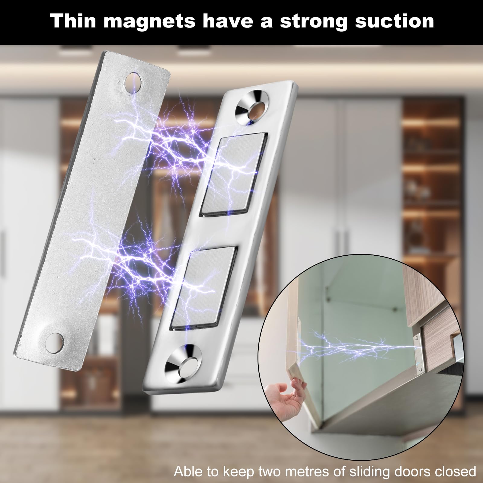 Hast du auch das Problem mit nicht richtig schließenden Schranktüren? Diese Magnetschnäpper von Prebarfun sind die perfekte Lösung! Im Set sind 6 Paare in zwei verschiedenen Größen: 4 Paare mit 6,5x1,6cm und 2 Paare mit 4,2x1,7cm. Die ultradünne Bauweise macht sie ideal für enge Bereiche wo normale Scharniere nicht passen. Aus hochwertigem Edelstahl gefertigt, sind sie verschleißfest und verformen sich nicht. Der Magnetismus ist so stark, dass die Türen sicher geschlossen bleiben, aber dennoch mit leichtem Druck zu öffnen sind. Perfekt um Kinder und Haustiere davon abzuhalten, Schränke zu öffnen. Zwei Installationsmöglichkeiten: Entweder mit den mitgelieferten Schrauben für maximale Stabilität oder mit Kleber für teure Möbel die du nicht anbohren willst. Einfache Montage - auch für Heimwerker-Anfänger geeignet. Bring Ordnung in deine Küche, dein Wohnzimmer oder dein Home-Office! Die silberne Farbe passt zu den meisten Möbeln und sieht dezent aus. Endlich keine klappernden Türen mehr!