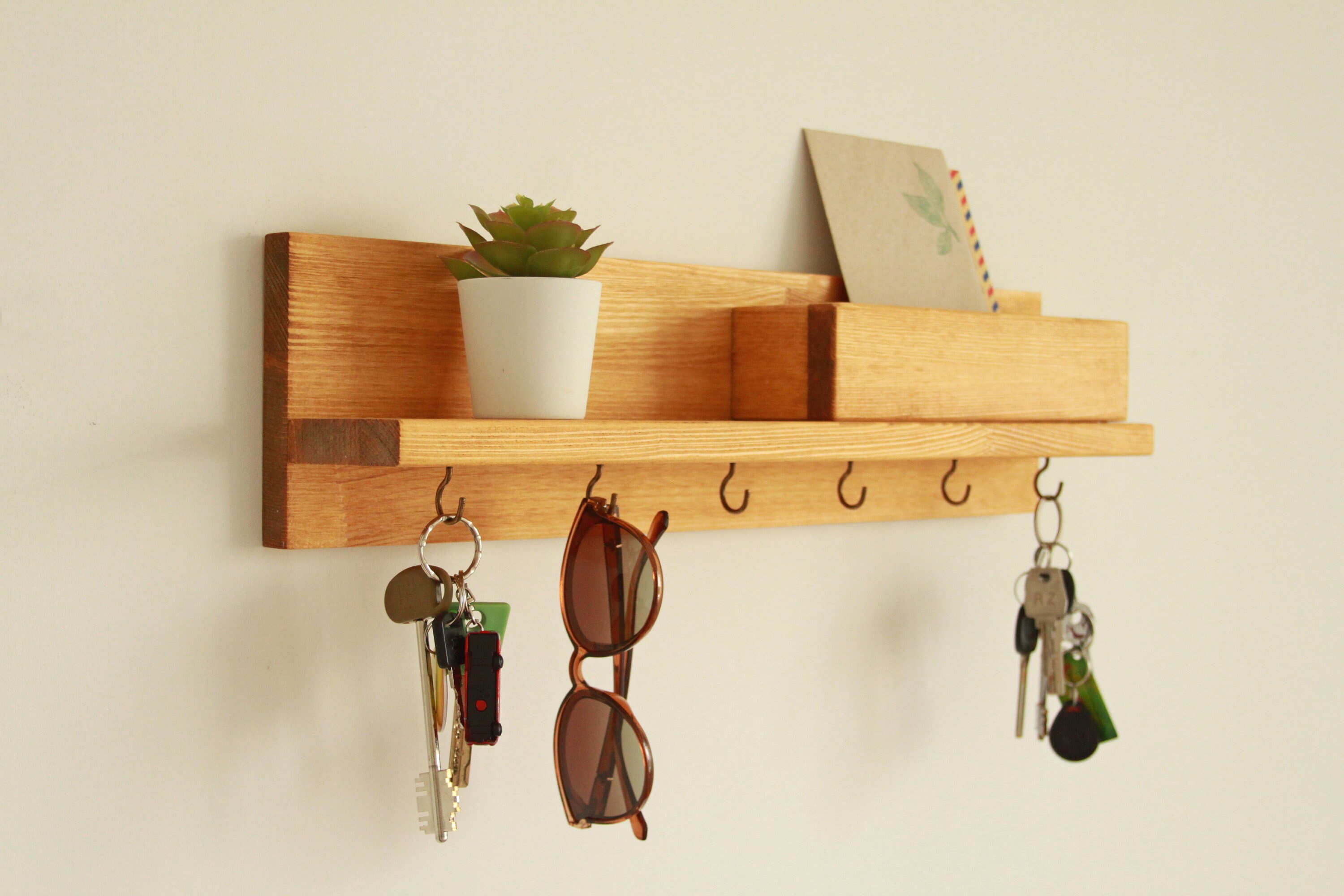 Schluss mit dem Chaos in der Diele! Dieser massive Briefhalter Organizer von Primo Lines bringt Ordnung in dein Zuhause. Aus hochwertigem Massivholz im vintage Landhausstil - robust und langlebig. Mit 2 Fächern für Post und Zeitschriften, 1 Ablagefläche für Kleinigkeiten und 4 starken Haken für Schlüssel, Hüte oder Hundeleinen. Maße: 40x10x24,7cm - kompakt aber geräumig! Perfekt für Diele, Flur, Küche oder Büro. Einfache Montage inklusive - alles nötige Zubehör liegt bei. In nur wenigen Minuten an der Wand und schon ist die Unordnung Geschichte! Sieht nicht nur praktisch aus, sondern ist auch ein stylisches Deko-Element. Endlich alles an einem Platz: Schlüssel, Post, Briefe, Magazine... Nie wieder suchen! Mach deinen Eingangsbereich zum organisierten Highlight deiner Wohnung!