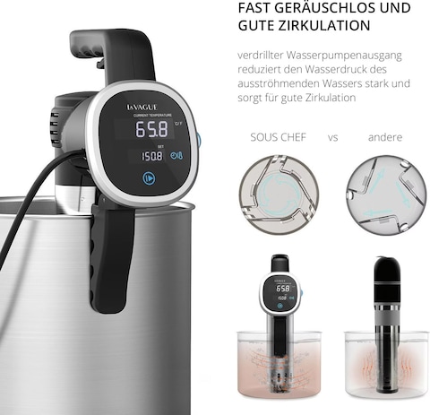Boah, dieser Princess Sous-Vide Stick bringt Restaurant-Qualität in deine Küche! Mit 1200 Watt Power und 0,1°C Genauigkeit gart er Fleisch, Fisch und Gemüse perfekt - immer saftig, immer genau richtig!