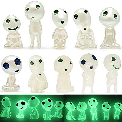 • 10 Stück Prinzessin Mononoke Waldgeister - Leuchtende Kodama Figuren Mit 15 Steinen