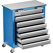 Ordnung muss sein - besonders in der Werkstatt! Dieser professionelle Werkzeugschrank mit 7 Schubladen ist der perfekte Helfer für alle Heimwerker und Profis. Mit den Maßen 426x458x844mm (BxTxH) ist er schmal genug für beengte Werkstattverhältnisse aber bietet trotzdem reichlich Stauraum. Die 5 kleinen Schubladen (313x410x74,5mm) sind ideal für Schrauben, Bits und Kleinteile, während die 2 großen Schubladen (313x410x153,5mm) auch größeres Werkzeug aufnehmen. Alle Schubladen laufen auf kugeelagerten Schienen super leicht und sind aus robustem, pulverbeschichtetem Metall gefertigt. Ursprünglich als Aufsatz für Werkzeugwagen konzipiert, kann der Schrank aber auch einzeln verwendet werden. Mit 38kg Eigengewicht steht er bombenfest und bietet sichere Aufbewahrung für dein wertvolles Werkzeug. In praktischem Grün - einfach aufstellen, Werkzeug sortieren und sich über endlich mehr Ordnung freuen! Deine Werkstatt wird es dir danken.