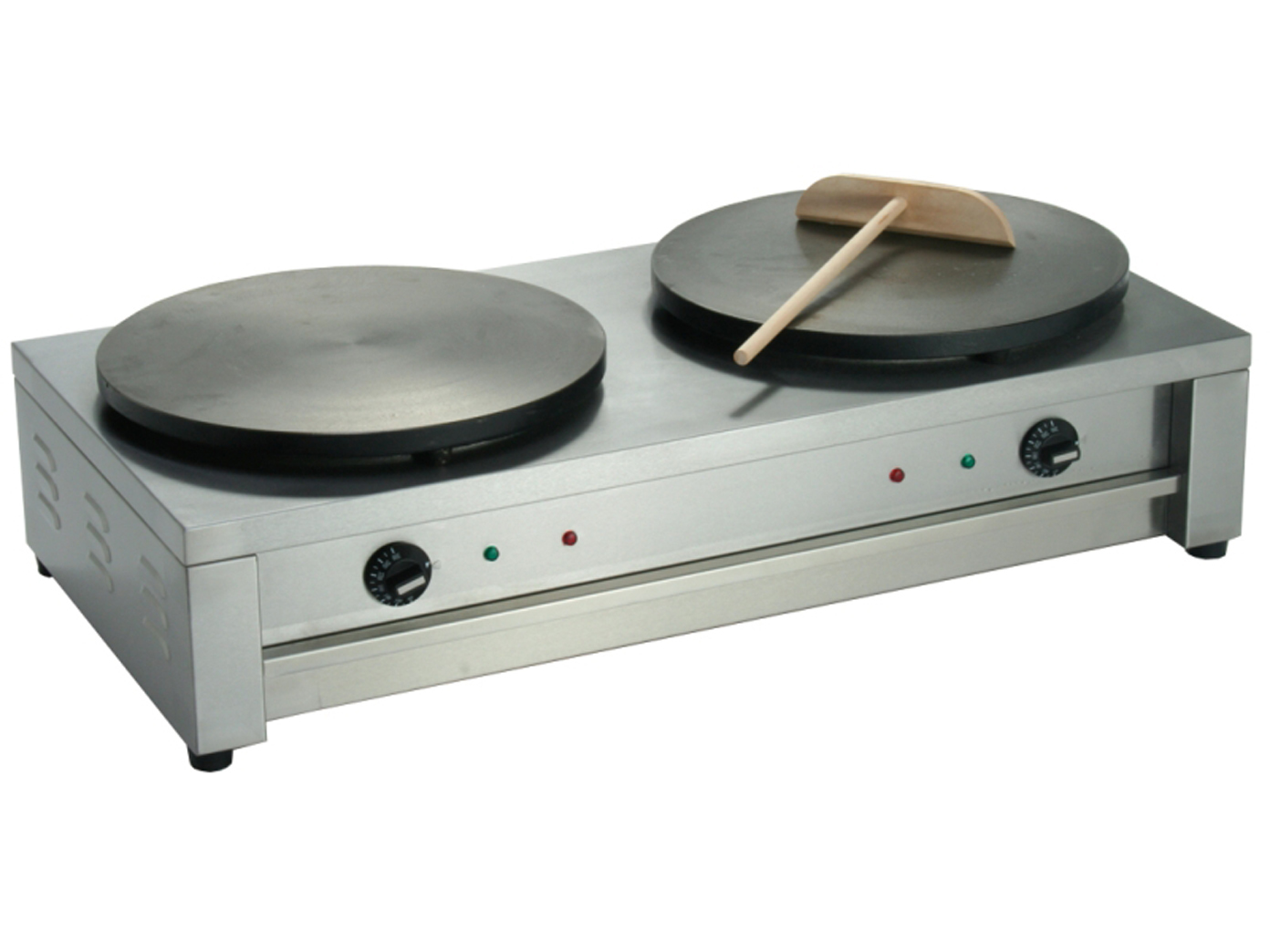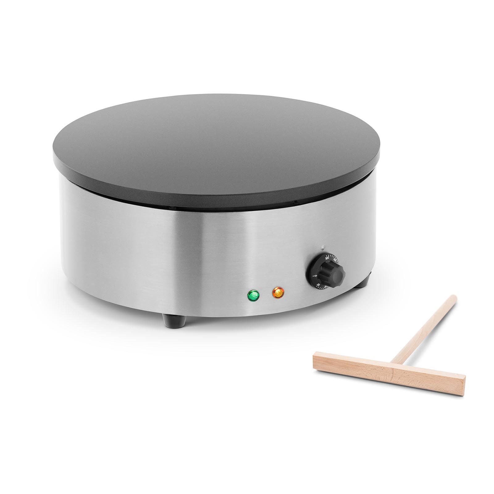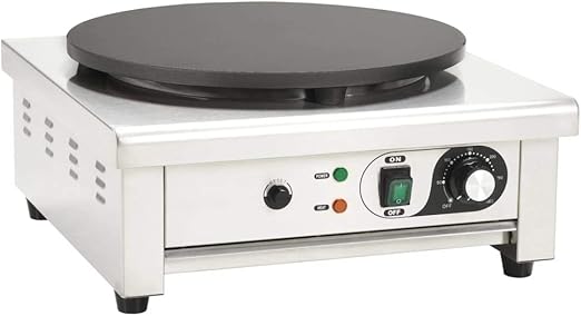 Crepes wie vom Profi - ganz einfach zu Hause! Diese elektrische Crepes-Maschine mit 45 cm großer Antihaftbeschichtung macht dich zum Crêpe-Meister. Mit satten 2800 Watt Leistung heizt die Platte schnell und gleichmäßig auf, sodass deine Crêpes perfekt gelingen. Die große Arbeitsfläche bietet genug Platz für mehrere Crêpes gleichzeitig - ideal für Familienfeiern, Partys oder sogar den gewerblichen Einsatz. Die Temperatur lässt sich stufenlos zwischen 150°C und 280°C regulieren, sodass du für jeden Teig die ideale Hitze findest. Besonders praktisch: Die Reinigung ist ein Kinderspiel dank der hochwertigen Antihaftbeschichtung. Einfach abwischen und schon ist die Platte wieder einsatzbereit! Das robuste Gehäuse aus hochwertigem Material steht sicher auf jedem Tisch oder Tresen. Technische Daten: 220V, 50Hz, 2800W, Durchmesser 45cm, inklusive 102 cm langem Netzkabel. Perfekt für süße Crêpes mit Nutella, herzhafte Varianten mit Käse oder klassische Galettes - deiner Kreativität sind keine Grenzen gesetzt!