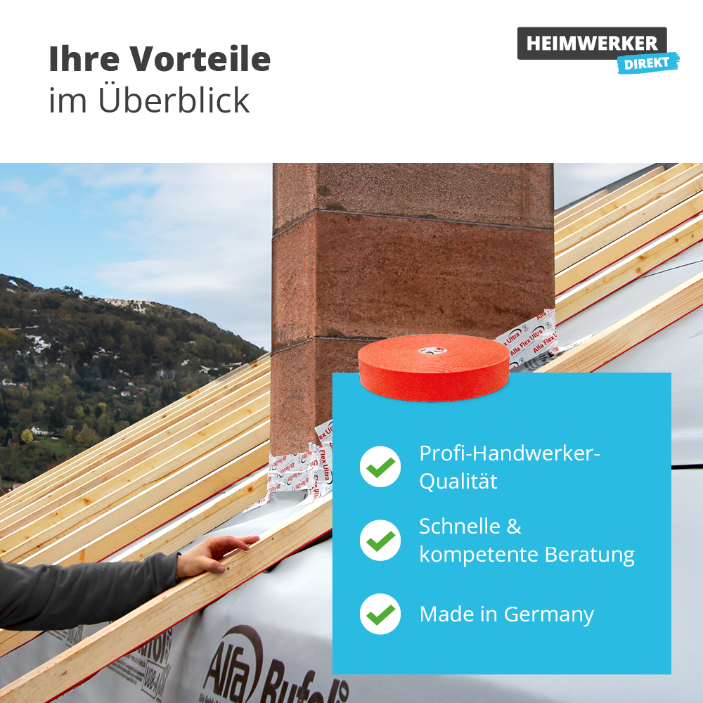 Für alle Heimwerker und Profis: Dieses PE-Nageldichtband ist ein echter Game-Changer beim Dachbau! Das stark klebende Schaumband dichtet zuverlässig Nagel-, Tacker- und Schraublöcher ab - so kann keine Feuchtigkeit in die Wärmedämmung eindringen und ärgerliche Bauschäden verursachen. Super praktisch: Du musst die Stellen nicht extra überkleben, das Band macht direkt einen perfekten Job. Die starke Klebkraft hält sogar auf sägerauem Holz bombenfest. Temperaturbeständig von -30° bis +80°C - das Band macht also auch extreme Wetterbedingungen mit. Einfach auf die Unterspannbahn kleben und die Konterlatte direkt darauf befestigen. Oder du klebst es vorher auf die Latte und richtest sie dann aus. Im Innenbereich kannst du es längs auf die Sparren kleben und dann die Dampfbremsfolie darauf tackern. Der geschlossenzellige PE-Schaum umschließt die Tackerstellen wie ein Profi. Ohne schädliche Wohngifte wie Lösemittel oder Formaldehyd - also absolut unbedenklich. Bei mindestens 5°C verarbeiten, dann hält's ewig. Mit 3mm Stärke und 45mm Breite auf 20m Rolle hast du genug Material für dein nächstes Projekt!