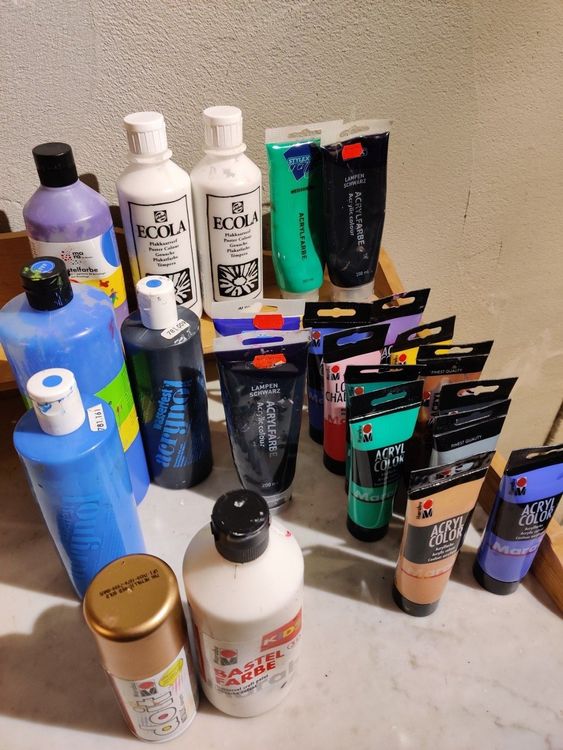 Boah, dieser Acrylfarben-Koffer von Prokva ist einfach der Hammer für alle, die gerne malen! Stell dir vor: Du kannst bis zu 54 Farbflaschen (je 2 oz) ordentlich verstauen und hast alles perfekt organisiert. \\n\\nDas geniale Design mit den abnehmbaren Trennwänden ermöglicht dir, deine Farben nach Belieben zu sortieren. So findest du immer sofort die richtige Farbe, ohne ewig suchen zu müssen. Die stabilen Trennwände sorgen dafür, dass die Flaschen sicher horizontal liegen - kein lästiges Umfallen mehr! \\n\\nUnd das ist noch nicht alles: Spezielle Gummibänder und Schlitze halten deine Pinsel und Palettenmesser sicher fest. Das durchsichtige Frontfach mit den 4 Schlitzen ist perfekt für tubenförmige Farben, und die seitlichen Netztaschen bieten Platz für kleine Paletten oder anderes Zubehör. \\n\\nMaße: 34 x 19,3 x 18,3 cm \\nMaterial: Robustes Nylon mit Aluminium-Innenfutter \\nExtras: Abnehmbarer Schultergurt und bequeme Griffe \\n\\nEgal ob du im Atelier arbeitest oder draußen malst - dieser Koffer schützt deine Utensilien optimal und ist super einfach zu transportieren. Die Aluminium-Innenauskleidung lässt sich leicht abwischen, sodass alles schön sauber bleibt. Perfekt für Anfänger und professionelle Künstler gleichermaßen!