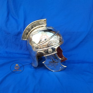 Wow, dieser Prunkhelm ist ja absolut beeindruckend! Eine originalgetreue Replik der römischen Prätorianer-Garde, die einst die Kaiser beschützt hat. Aus massivem 1,0mm Messingblech gefertigt, mit reich verzierten Ornamenten, die diesen Helm zu einem echten Prunkstück machen. Der rote Helmbusch aus echten Pferdehaaren und die beiden Wangenklappen aus Messing verleihen ihm seine authentische Erscheinung. Das verstellbare Lederinlet sorgt für perfekten Sitz - passt für Kopfumfänge bis 64cm. Mit 23,5cm Länge und 19cm Breite ist er gut proportioniert. Achtung: Mit 2,65kg Gewicht spürt man die Qualität! Dieser Helm basiert auf historischen Steinreliefs und ist ein absoluter Hingucker für jede Sammlung, als Deko-Stück oder für historische Darstellungen. Ein Stück römische Geschichte für dein Zuhause - qualitativ hochwertig und detailgetreu nachgebildet. Einfach fantastisch!
