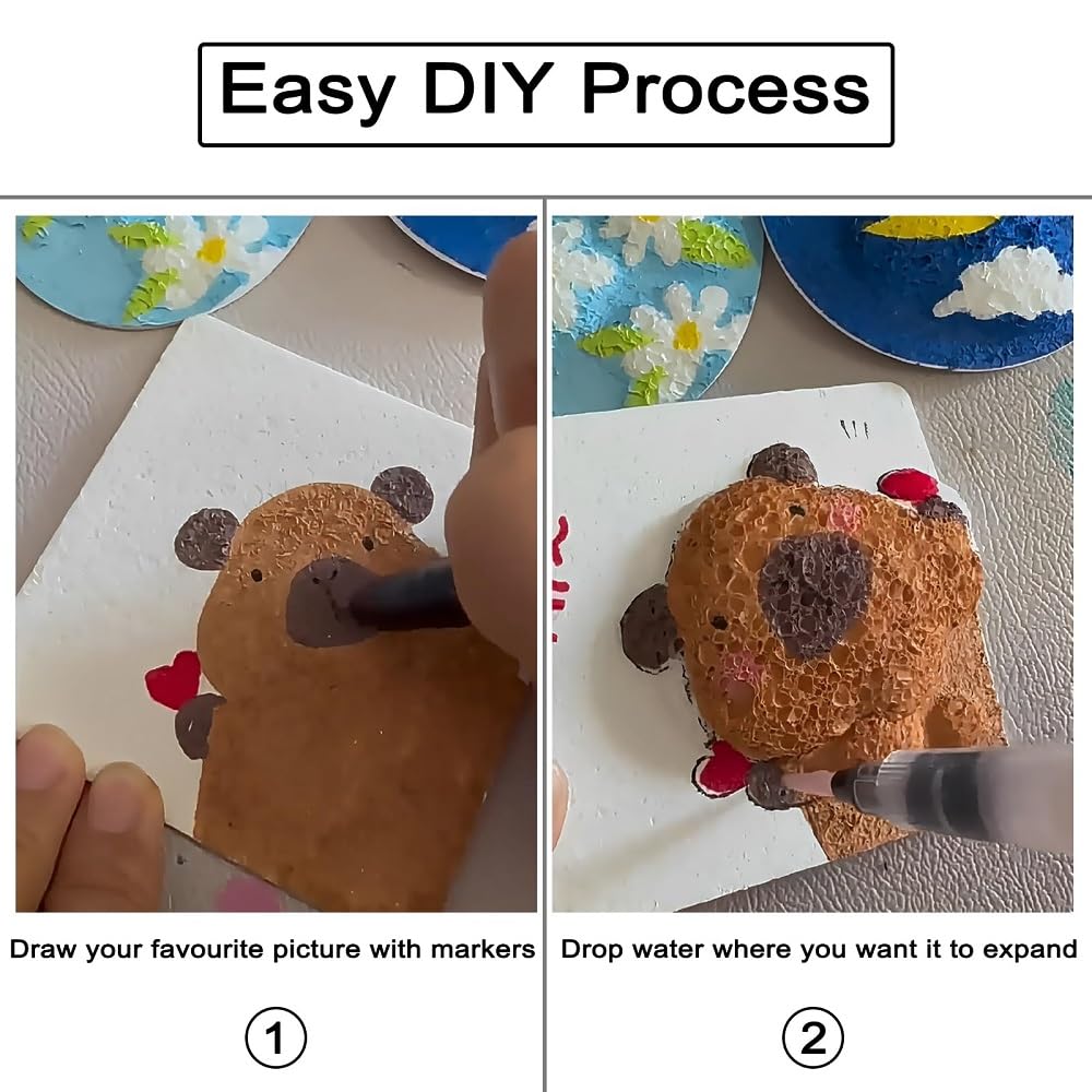 Mama, Papa - das ist ja magisch! Dieses Puffy Paint Set begeistert kleine und große Künstler. Male auf das Spezialpapier und siehe zu, wie dein Bild beim Trocknen aufquillt und 3D wird! Mit 12 bunten Markern, verschiedenen Papierformen und einer Mini-Staffelei. Alles dabei für kreative Stunden: Pinsel mit Wassertank, Aufkleber, Ketten und mehr. Super für Kindergeburtstage, Regentage oder einfach mal kreativ sein. Ungiftige Materialien - absolut sicher für Kinder. Fördert die Fantasie und macht riesig Spaß! Die Ergebnisse sind immer wieder verblüffend - ein echter Wow-Effekt!