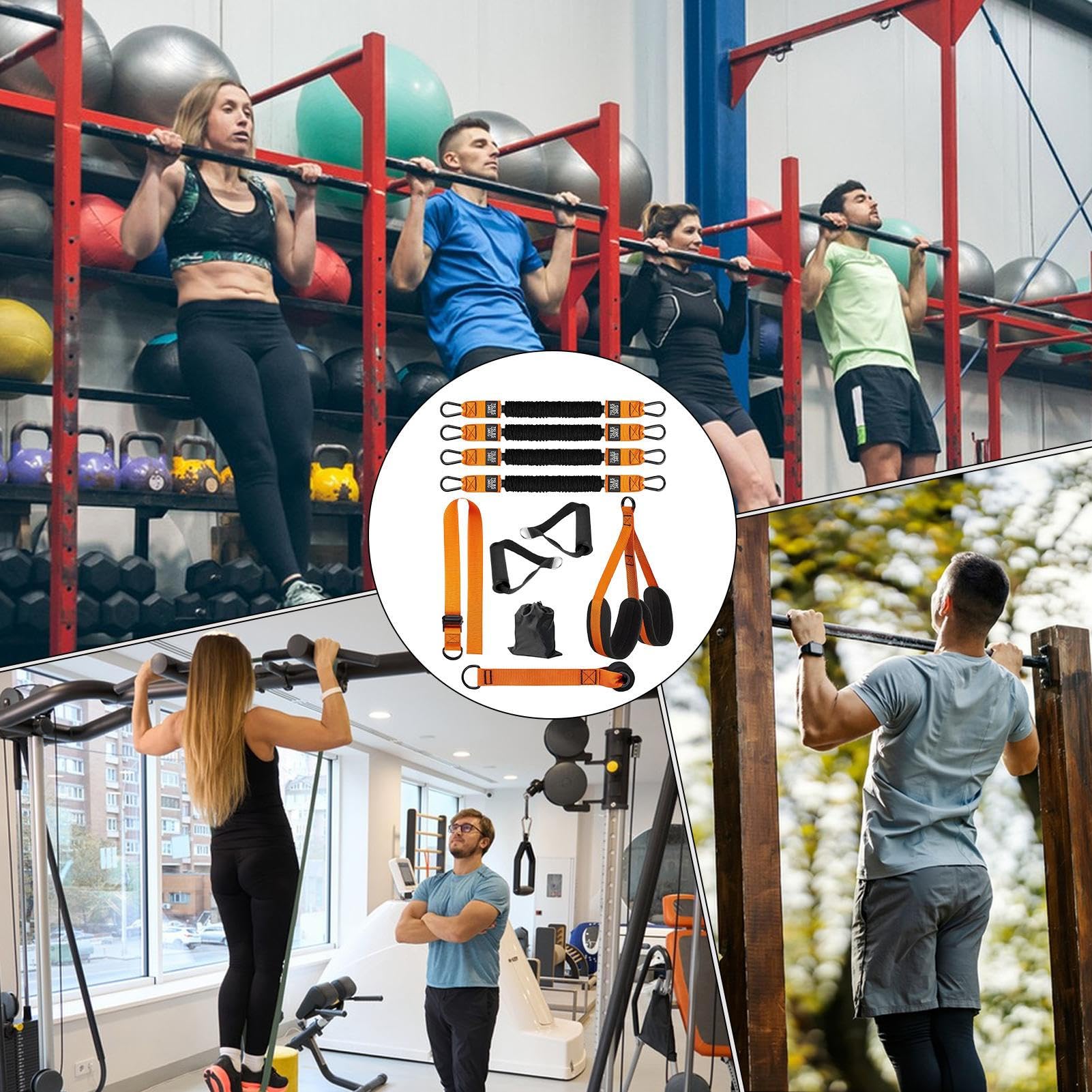 Endlich Klimmzüge schaffen! Diese Pull-Up Assist Bands machen's möglich. Der verstellbare Gürtel mit den Widerstandsbändern unterstützt dich bei Klimmzügen und anderen Oberkörper-Übungen. Perfekt für Training zu Hause - einfach in der Tür befestigen und loslegen. Das Set enthält je nach Variante 2-4 Spannseile, Fußpad, Tragetasche und Türschnalle. Aus robustem Nylon und Gummi gefertigt, hält auch intensivem Training stand. Mit ca. 25x26x7cm kompakt und leicht zu transportieren. Für Fitness-Einsteiger und Fortgeschrittene, die ihre Klimmzug-Technik verbessern wollen. Wähle zwischen Set A, B oder C mit unterschiedlicher Anzahl an Bändern.