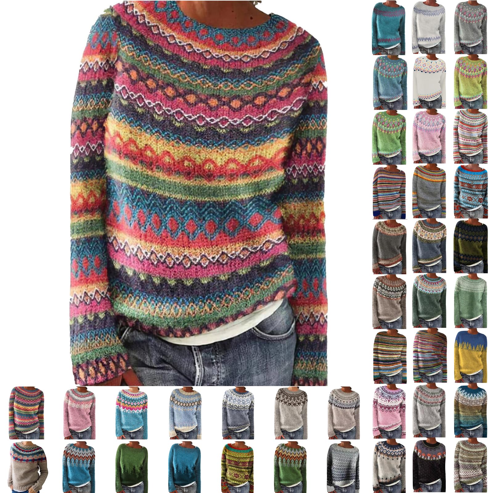 Gemütlichkeit pur: Dieser Norweger Pullover für Damen hält dich an kalten Tagen kuschelig warm. Aus weichem Strickmaterial mit dekorativem Norwegermuster und kontrastfarbenem Strickkragen. Der lockere Oversize-Schnitt sorgt für maximalen Komfort - perfekt zum Drunterziehen oder als modisches Statement. Mit langen Ärmeln und gerippten Bündchen an Kragen, Ärmeln und Saum. Ideal für Herbst und Winter, ob im Büro, an der Uni oder beim Winterspaziergang. Kombinierbar mit Jeans, Leggings oder Rock. Tipp: Für extra lockere Passform einfach eine Größe größer bestellen! Schonend mit kaltem Wasser waschen und flach trocknen lassen. Dein neuer Lieblingspullover für die kalte Jahreszeit!