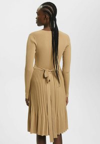 Boah, dieses Pulloverkleid ist ja mal richtig stylisch! Das zweiteilige Design mit Zopfmuster-Oberteil und plissiertem Rock sieht einfach mega aus. Aus weicher Baumwollmischung gefertigt, ist es super kuschelig und warm - perfekt für kühlere Tage! Der klassische Rundhals und die langen Ärmel machen es total vielseitig kombinierbar. Ob mit Sneakers für einen lässigen Look oder mit Stiefeletten für einen Abend - dieses Kleid passt immer! Erhältlich in super vielen Farben: Beige, Pink, Schwarz, Rot, Khaki, Grün, Hellblau, Blau, Grau und Braun. Von Größe S bis XL ist für jede was dabei. Einfach mit Jeansjacke oder Ledermantel kombinieren und schon hast du den perfekten Herbst-Look! Perfekt fürs Café, Büro, Uni oder gemütliche Treffen mit Freunden. Maschinenwäsche kalt und liegend trocknen - so bleibt das Zopfmuster lange schön. Ein echter Allrounder für deine Garderobe!