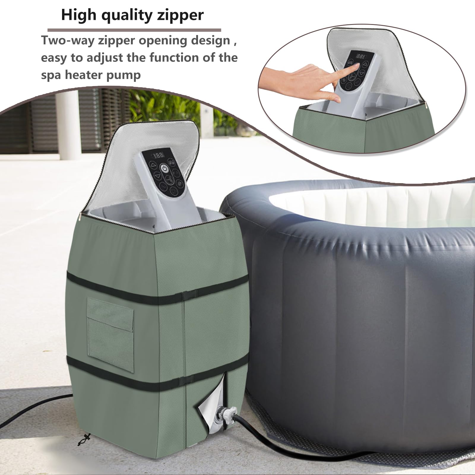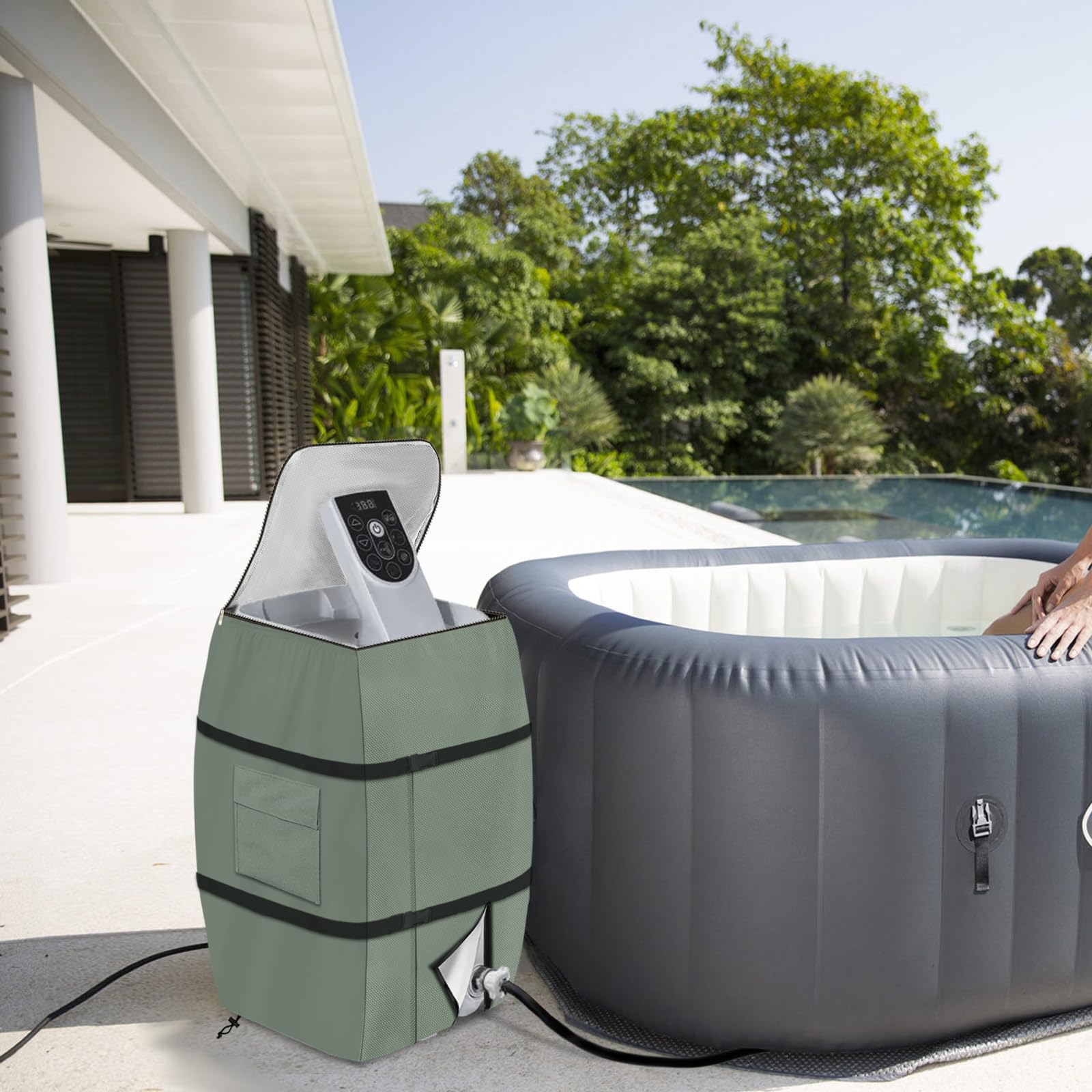 Hey, diese praktische Abdeckung für deine Whirlpool-Pumpe ist echt ein Game-Changer! Mach dir keine Sorgen mehr über Regen, Schnee oder Staub - die Hülle aus robustem 420D Oxford-Stoff hält alles zuverlässig ab. Mit den 3 Klettbändern sitzt sie bombenfest, auch bei starkem Wind. Und das Beste: Du musst nicht mal den Schlauch abnehmen um sie zu installieren! Perfekt für die meisten quadratischen Whirlpool-Heizpumpen. Maße: 43x38x54cm, gefaltet nur 21x4x6cm - super platzsparend. Das Material ist nicht nur wasserdicht, sondern auch UV-beständig und reißfest. Deine Pumpe bleibt trocken, sauber und geschützt vor allen Witterungseinflüssen. Mit dem praktischen Reißverschluss und Klettverschluss ist die Handhabung total easy. Übrigens: Nur die Abdeckung ist im Lieferumfang enthalten, nicht die Pumpe selbst. Perfect für den ganzjährigen Outdoor-Einsatz!