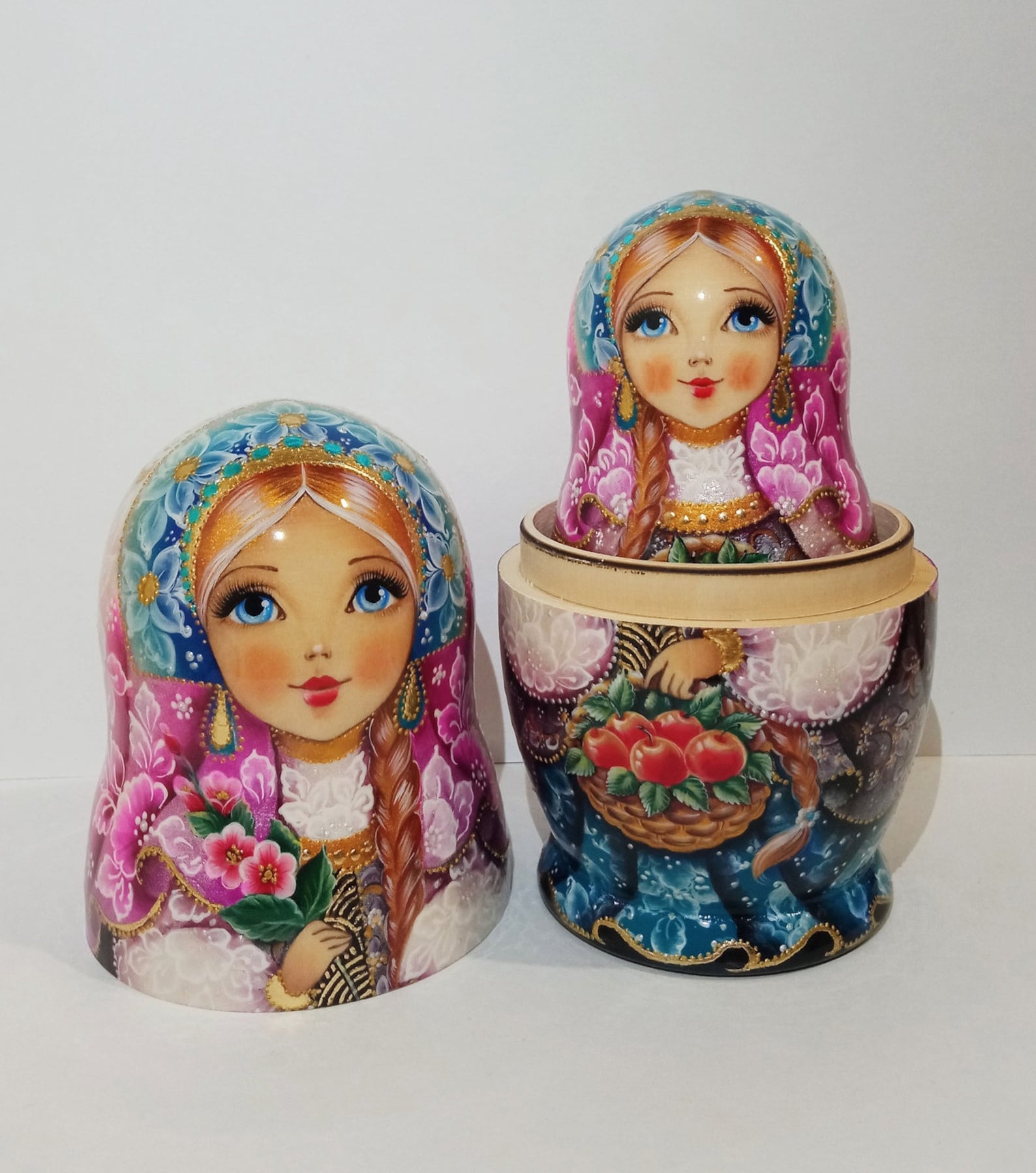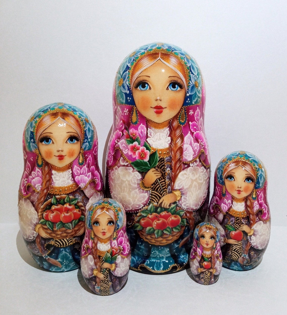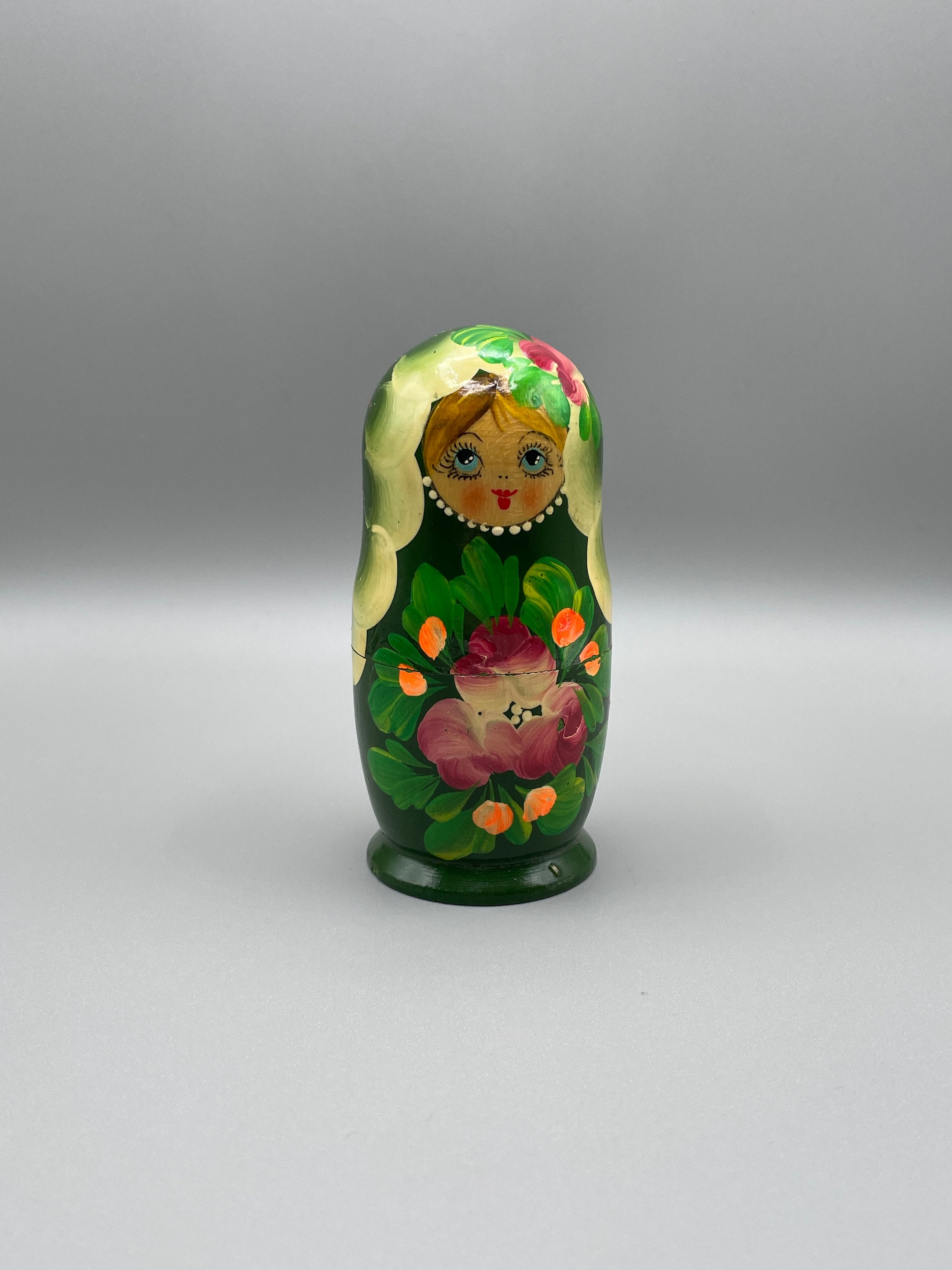Diese wunderschönen russischen Matroschka-Puppen bringen charmante Folkore-Atmosphäre in dein Zuhause! Jede Puppe ist handbemalt mit detailreichen Blumenmustern in schönen Grüntönen. Das Set besteht aus 5 Puppen, die ineinander gestapelt werden - die klassische Matryoshka! Von der großen Außenpuppe bis zur winzigen Innersten, alle sind liebevoll gestaltet. Wichtig: Das sind reine Dekorationsartikel, also kein Spielzeug für Kinder. Perfekt fürs Wohnzimmer, Büro oder als besonderes Sammlerstück. Einfach die erste Figur öffnen und die nächste kommt zum Vorschein - macht immer wieder Spaß! Die Qualität ist top, die Farben leuchten richtig schön. Schaffen sofort gemütliche Stimmung und sind ein toller Gesprächsstarter. Ob auf dem Sideboard, Regal oder als Tischdekoration - überall ein Hingucker. Echte Handarbeit mit traditionellem Flair! Einfach hinstellen und an den kunstvollen Details erfreuen.