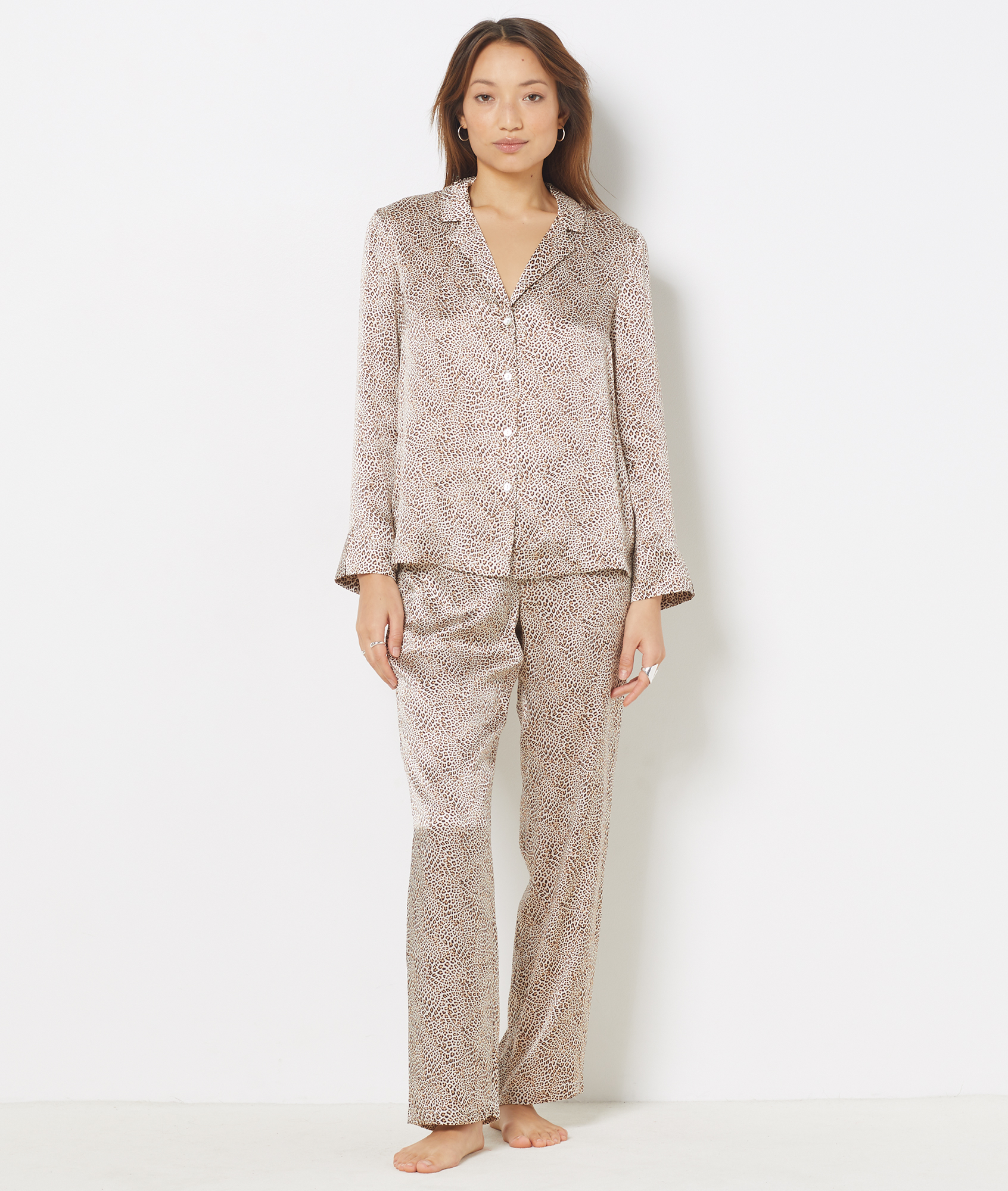 Mädels, dieser Seiden-Pyjama ist einfach nur Traumhaft! Fühlt sich an wie ein zweite Haut - so weich und geschmeidig. Das Set besteht aus einem langärmligen Hemd mit Knopfleiste und einer passenden Hose. Perfekt für gemütliche Abende auf der Couch oder erholsamen Schlaf. Die glatte Seide kratzt nicht und ist super atmungsaktiv - kein Schwitzen mehr in der Nacht! Der klassische Schnitt sitzt locker und bequem, ohne einzuengen. Besonders praktisch: Die Knopfleiste vorn sieht nicht nur schick aus, sondern macht auch das An- und Ausziehen leicht. Obwohl es sich so luxuriös anfühlt, ist der Pyjama pflegeleicht und waschbar. Einfach mal was Gönnung für sich selbst - du hast es dir verdient! Auch super als Geschenk für die beste Freundin oder Mama. Mit diesem Pyjama fühlst du dich einfach wohl in deiner Haut - versprochen!