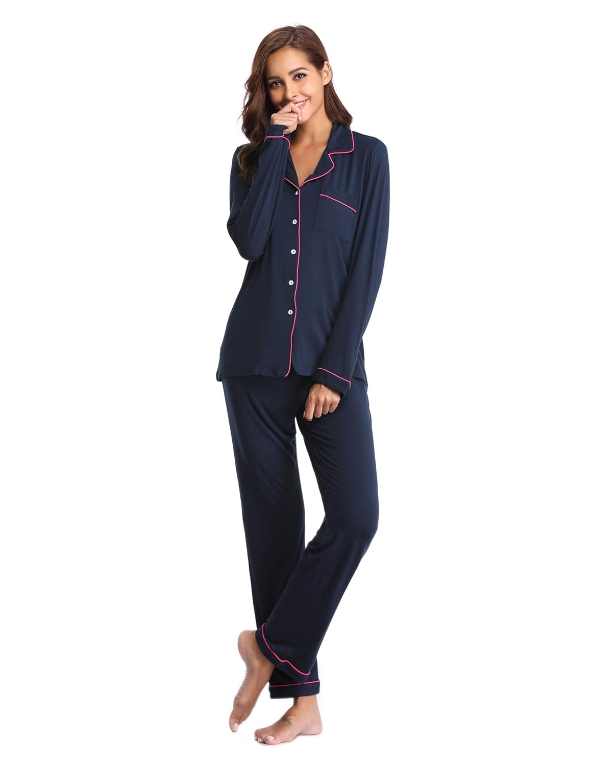 Stylish schlafen mit diesem bezaubernden Pyjama-Set! Das zweiteilige Design besteht aus einem Langarm-Oberteil mit eleganter Knopfleiste und Reverskragen sowie einer bequemen langen Hose. Das süße Polka-Dots und Karo-Muster verleiht dem Schlafanzug einen zeitlosen Charme. Hergestellt aus weichem, atmungsaktivem Stoff fühlt sich der Pyjama angenehm auf der Haut an und sorgt für einen erholsamen Schlaf. Die lockere Passform gibt dir genug Bewegungsfreiheit, ohne zu weit zu sein. Perfekt nicht nur zum Schlafen, sondern auch für gemütliche Abende auf der Couch, Yoga-Entspannung oder Pyjama-Partys mit Freundinnen. Einfach in der Maschine waschbar - praktisch für den täglichen Gebrauch. Ein tolles Geschenk für dich selbst oder eine liebe Freundin, die Komfort und Stil zu schätzen weiß!
