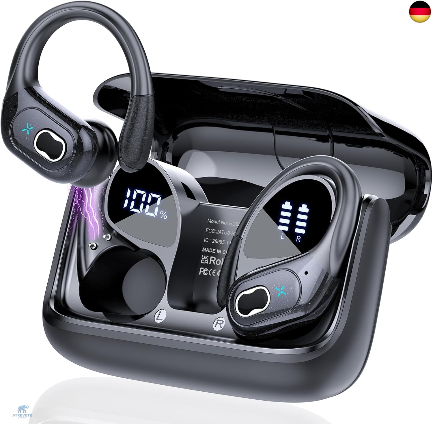 Hey, hast du genug von Kopfhörern, die beim Sport ständig verrutschen oder keinen Bass haben? Der Q38 ist genau das Richtige für dich! Mit der ultra-stabilen Ohrbügel-Konstruktion sitzt er perfekt – egal ob beim Laufen, Workout oder Yoga. Und keine Sorge um Schweiß: Die IP7-Zertifizierung macht ihn resistent gegen Spritzwasser und Regen. 🎵\n\nÜberzeugt? Hier kommen die Details:\n• 68 STUNDEN MUSIK: 8h durchgehende Nutzung, plus 68h Gesamtspielzeit mit dem 800mAh-Ladecase. Die digitale LED-Anzeige zeigt dir immer den Akkustand an.\n• BLUETOOTH 5.4: Super stabil, bis zu 15m Reichweite und super energiesparend. Einfach aus dem Case nehmen – schon verbindet er sich automatisch mit deinem Handy.\n• ENC MIKROFON & KLANG: 4 Mikrofone mit Noise Cancelling unterdrücken 90 % der Störgeräusche. Die 14,2-mm-Doppelschicht-Treiber liefern satte Bässe und klare Höhen.\n• SMART TOUCH: Steuere deine Musik, nimm Anrufe an oder aktiviere Siri/Google per Fingerdruck – ohne dein Handy rauszuholen.\n\nIm Lieferumfang sind dabei: 2 Kopfhörer, Ladecase (800mAh), USB-C-Kabel, 6 Ohrstöpsel (S/M/L) und die Bedienungsanleitung. Perfekt für Sport, Office und Alltag!
