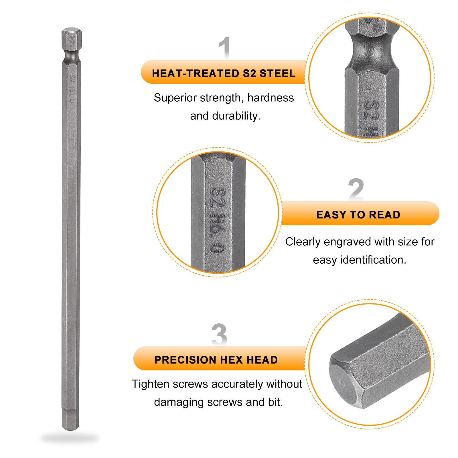 Boah, diese Bits sind richtig gut! Aus wärmebehandeltem S2-Stahl mit HRC58-60 Härte - die halten einfach ewig und brechen nicht so schnell. Mit 150mm Länge kommst du auch in schwer erreichbare Ecken. Der starke Magnet hält Schrauben sicher fest, selbst wenn du schräg arbeitest. Perfekt für Möbelmontage, Autoarbeiten oder Heimwerker-Projekte. Die Sechskant-Form mit 1/4\ Schaft passt in alle gängigen Akkuschrauber und Bohrmaschinen. Jedes Bit ist klar mit der Größe graviert - kein Suchen mehr! Die polierte Oberfläche reduziert Reibung und macht das Arbeiten leichter. Einfach ins Werkzeug stecken und los geht's. Für alle, die professionelles Zubehör schätzen - ob Profi oder Hobby-Heimwerker. Damit macht Schrauben richtig Spaß!