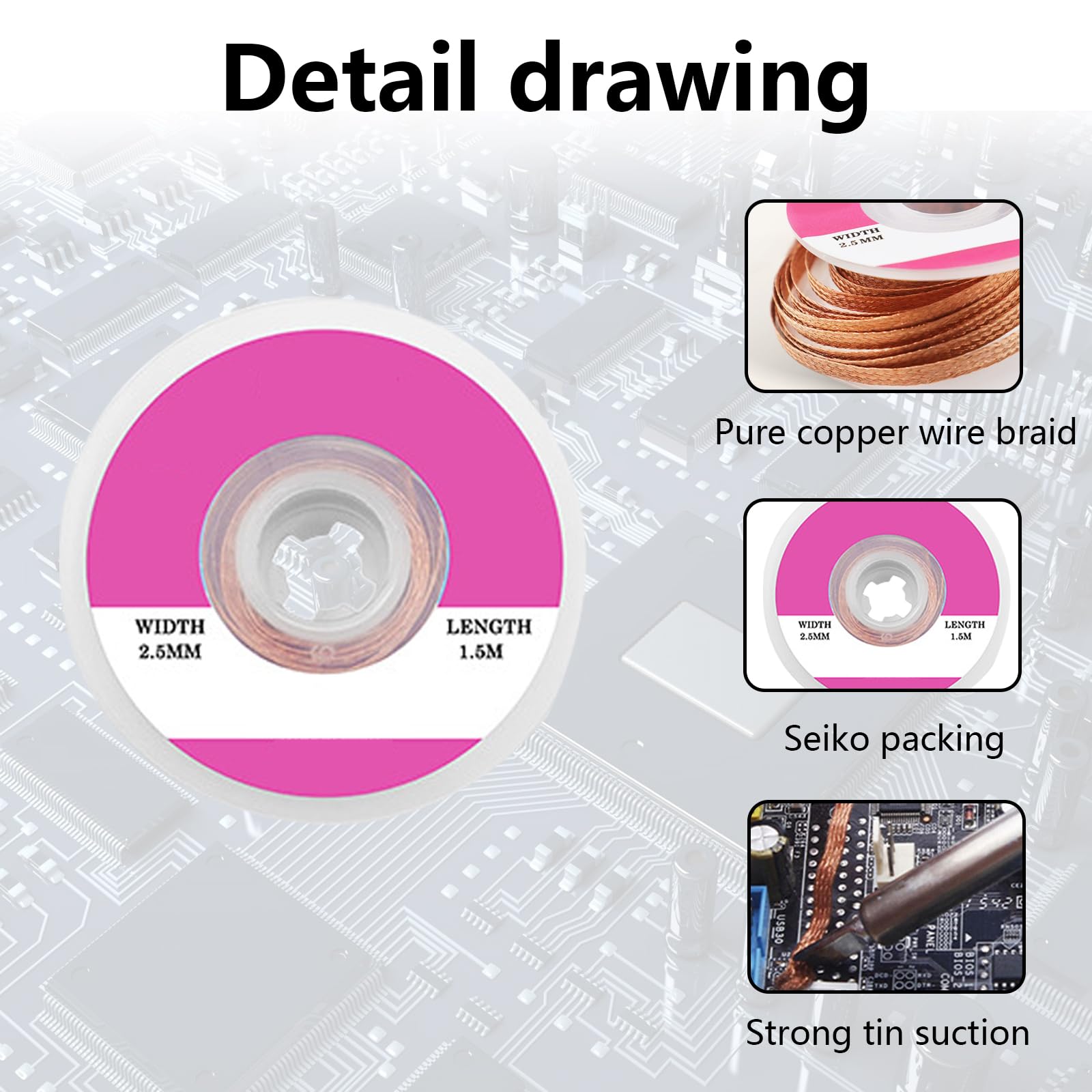 Diese Entlötlitze ist ein Muss für jede Elektronik-Werkstatt! Der 2,5mm breite Kupferdocht saugt überschüssiges Lötzinn super effektiv auf. 15m Rolle - reicht für viele Reparaturen. Perfekt für Leiterplatten, Handy-Komponenten oder allgemeine Lötarbeiten. Das feine Flechtdesign ermöglicht präzises Arbeiten, auch an kleinen Stellen. Korrosionsbeständig, oxidiert nicht und leitet Wärme super schnell. Ideal für Profis, Hobbybastler, Schulen oder Labore. Einfach anwenden, sauberes Ergebnis jedes Mal. Qwork steht für Qualität zum fairen Preis - dein zuverlässiger Helfer bei allen Löt-Projekten!