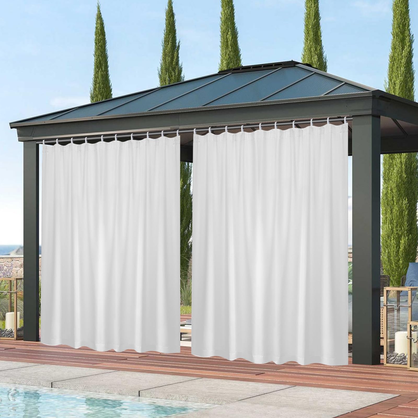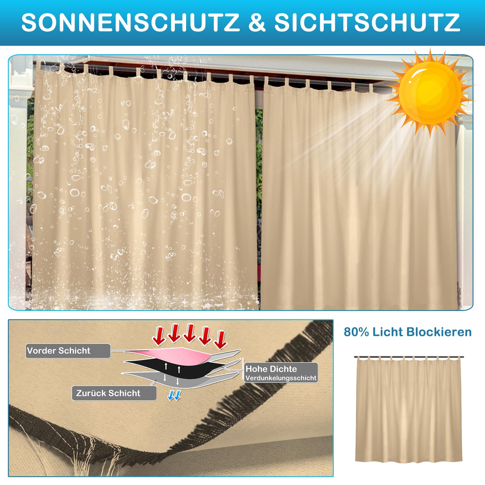 • Qelus Outdoor Vorhang Wasserdicht 254x213cm - Mit Klettverschluss, Hellgrau