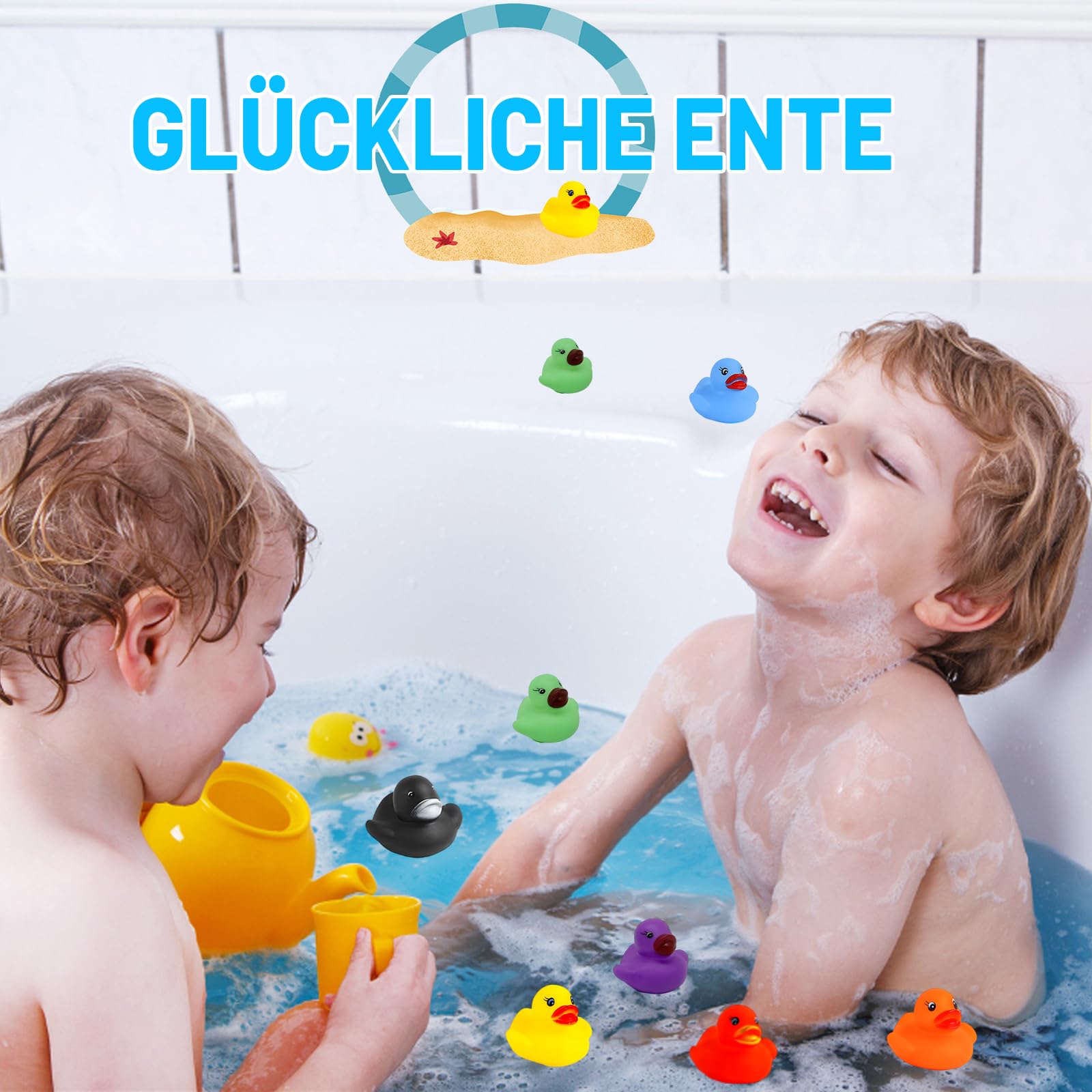 Hey, suchst du nach richtig lustigem Badespaß für die Kleinen? Diese 24 bunten Gummienten sind genau das Richtige! Jede Ente ist etwa 3,6 cm groß und quietscht fröhlich, wenn man sie drückt. In 8 knalligen Farben - von Gelb über Pink bis Lila - machen sie nicht nur in der Badewanne Spaß, sondern auch als Deko für Kindergeburtstage. Aus weichem, robustem Material gefertigt, schwimmen sie super und passen perfekt in kleine Kinderhände. Übrigens: Die Enten sind absolut sicher, ohne scharfe Kanten, und lassen sich easy reinigen. Perfekt für Kinder ab 3 Jahren, um Farben zu lernen und die Feinmotorik zu fördern. Ob im Pool, in der Badewanne oder als Party-Mitgebsel - diese Entchen sorgen garantiert für Stimmung! Hol dir das Set und bring mehr Farbe in den Badespaß!