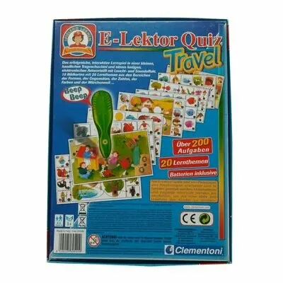 Macht Lernen auch auf Reisen zum Spaß! Der Clementoni E-Lektor Quiz Travel mit der beliebten Dora ist der perfekte Begleiter für unterwegs. Mit dem interaktiven Stift und 9 bunten Lernkarten mit über 180 Aufgaben entdecken Vorschulkinder spielerisch die Welt. Einfach Karte einlegen, Frage beantworten und sofort gibt's Feedback - so macht Lernen richtig Laune! Super praktisch für Auto, Bahn oder Wartezeiten. Das handliche Format passt in jeden Rucksack. Fördert Konzentration, Logik und Vorschulwissen - und das ganz ohne Bildschirm! Achtung: Enthält kleine Teile, daher nicht für Kinder unter 3 Jahren geeignet. Perfekt für Kinder von 3-6 Jahren, die neugierig auf Buchstaben, Zahlen und die Welt sind!