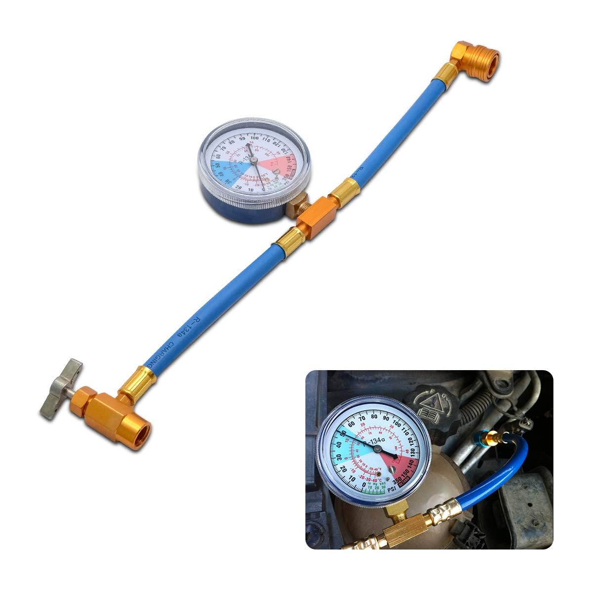 • R134A Klimaanlage Nachfüllset Mit Manometer - AC Kältemittel Ladeschlauch