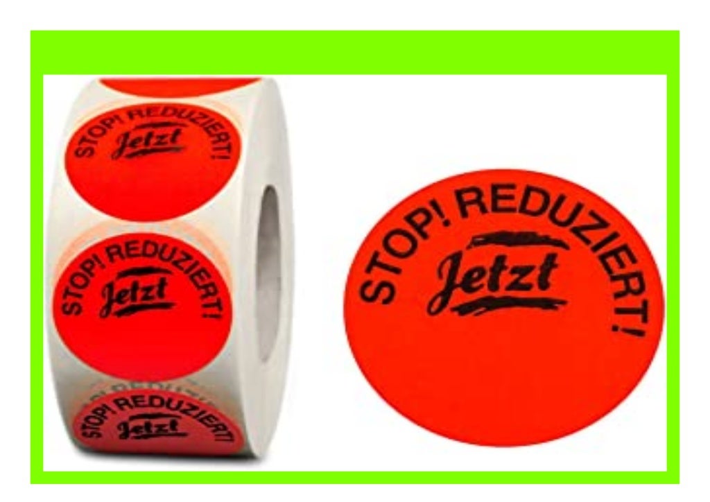 Perfekte Aufkleber für deine Sonderangebote! Diese leuchtroten REDUZIERT-Etiketten haben 30mm Durchmesser und sind permanent haftend. Im praktischen Rollenformat mit 1000 Stück - genug für viele Aktionen. Schwarz bedruckt mit klarer, gut lesbarer Schrift. Ideal für Geschäfte, Märkte, Flohmärkte oder private Verkäufe. Einfach abzutrennen und aufzukleben. Mach deine Rabattaktionen sofort sichtbar und steigere deine Verkäufe. Mit diesen professionellen Etiketten hebst du deine Sonderpreise optimal hervor - Bestell jetzt und profitiere von mehr Aufmerksamkeit!